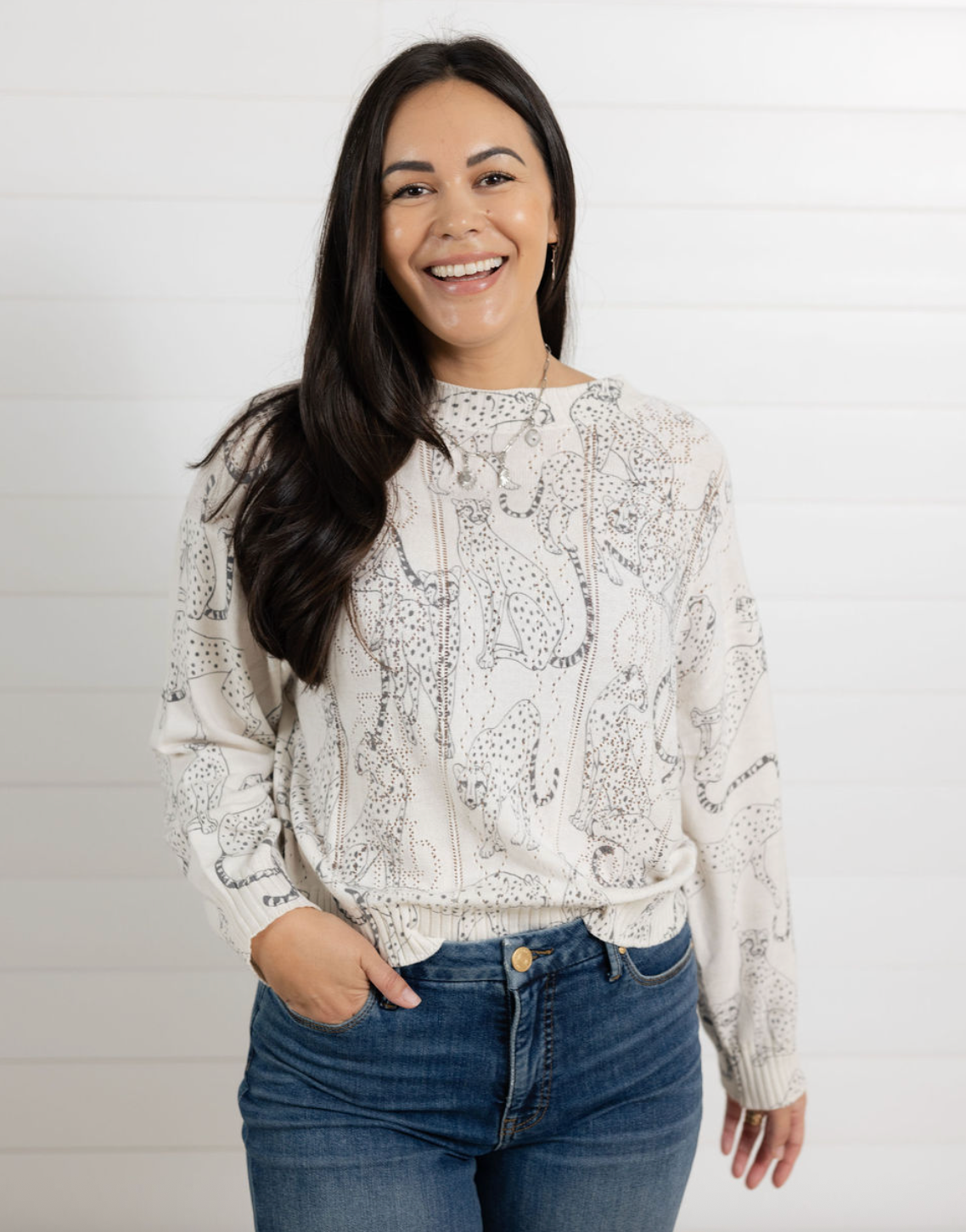 Cheetah Print Pointelle Sweater