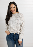 The Cheetah Print Pointelle Sweater is the perfect blend of cozy and cool, designed to move effortlessly from casual to elevated. This lightweight pullover features a subtle open-work pointelle knit that’s ideal for layering over a tank or cami. The ribbed boat neckline adds a polished touch, while the relaxed drop shoulders and straight sleeves keep the vibe easy and wearable. Finished with a classic animal print, it’s a timeless statement you’ll reach for again and again.