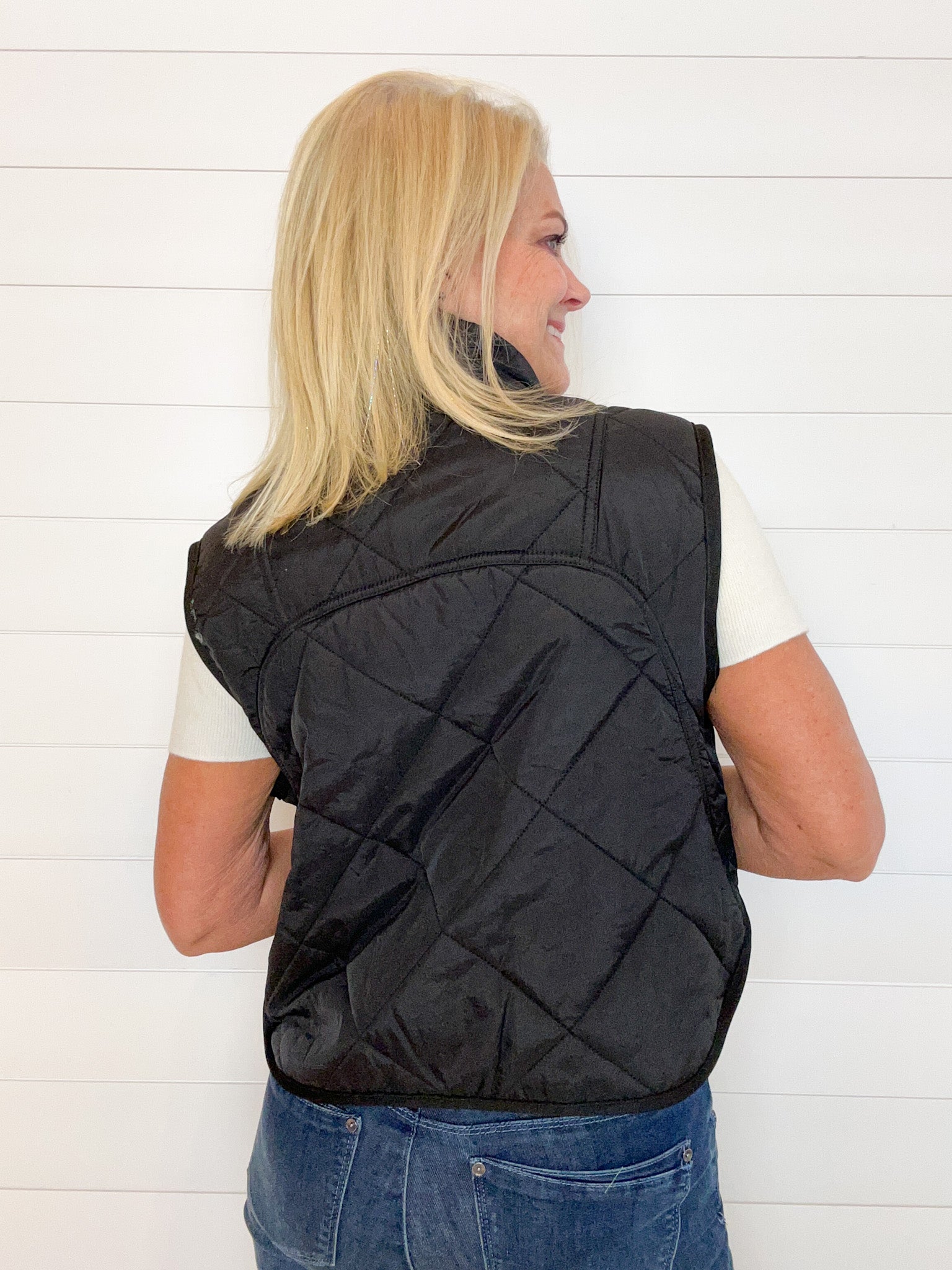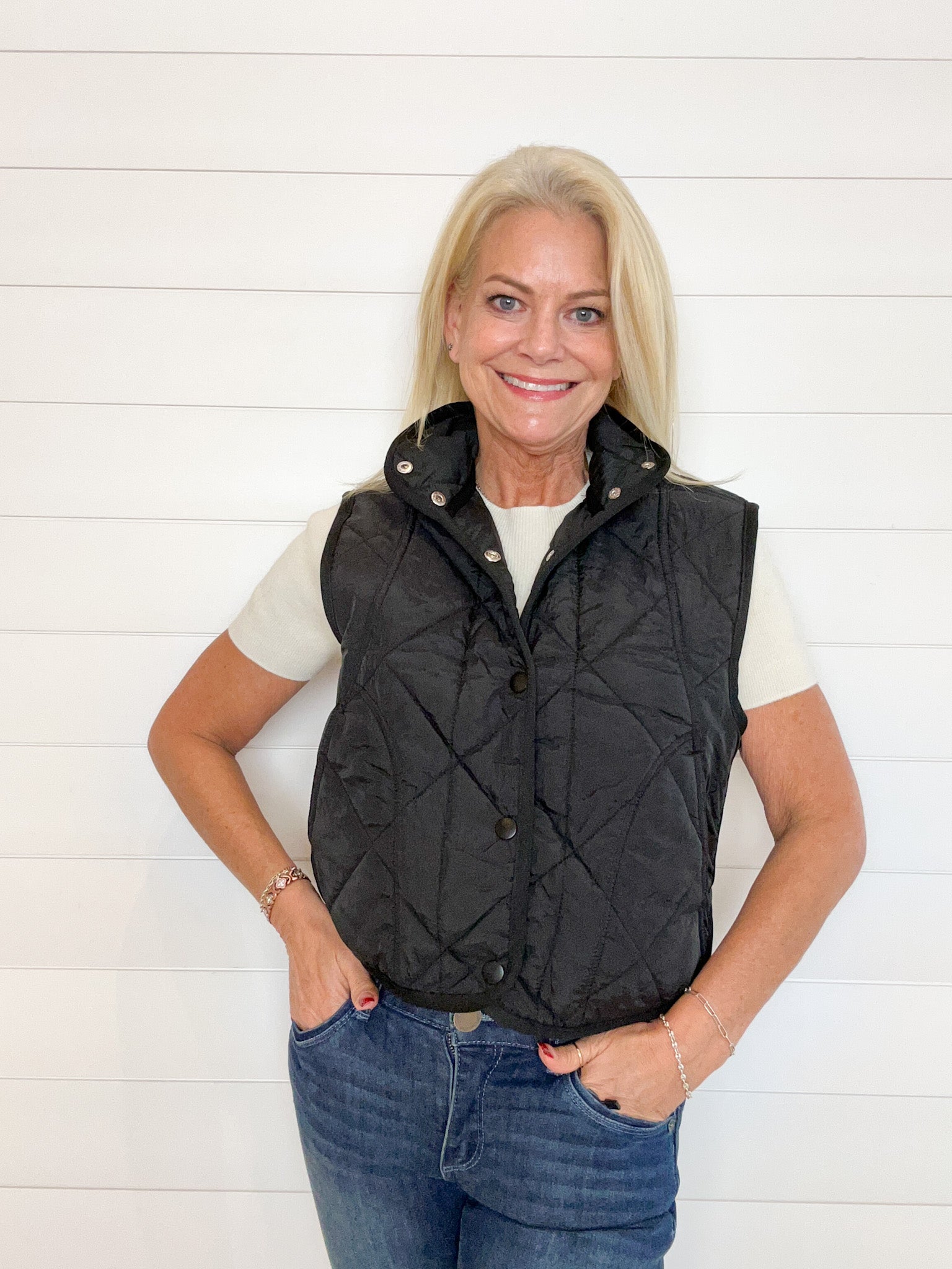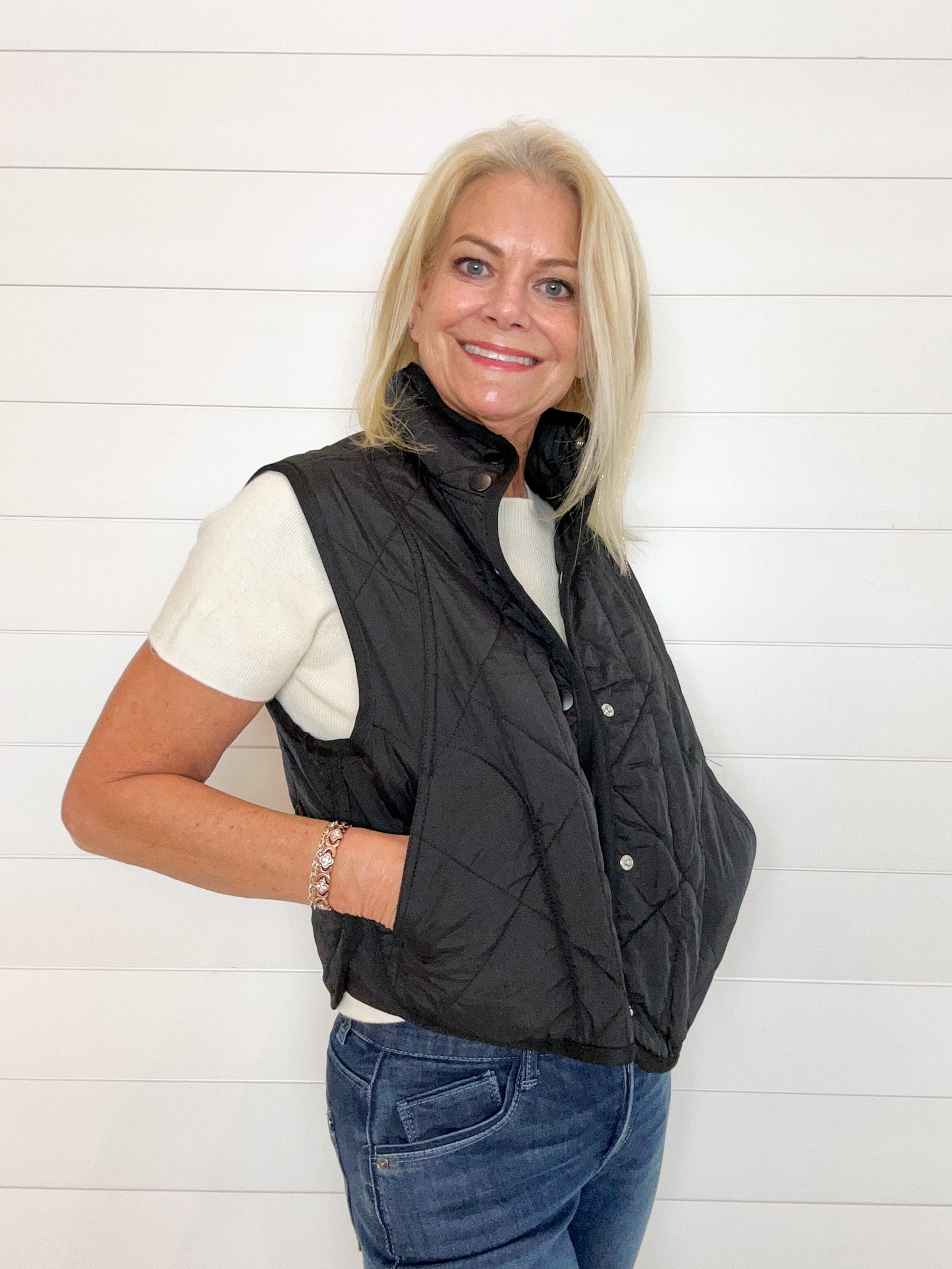 A forever favorite for layering season, the Classic Quilted High Neck Vest brings sleek, polished warmth to any outfit. Its smooth quilted finish and flattering fit make it an easy pick for everything from morning coffee runs to weekend errands. Lightweight, cozy, and endlessly versatile — this one’s a must-have staple.