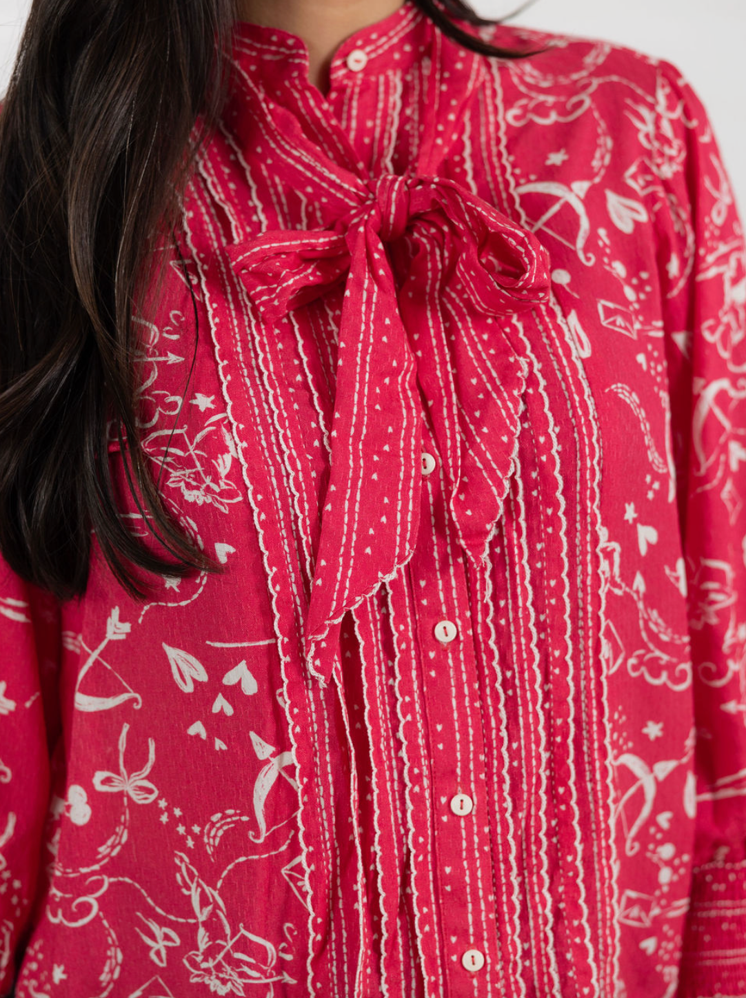 Ruffle detail along the button-down placket