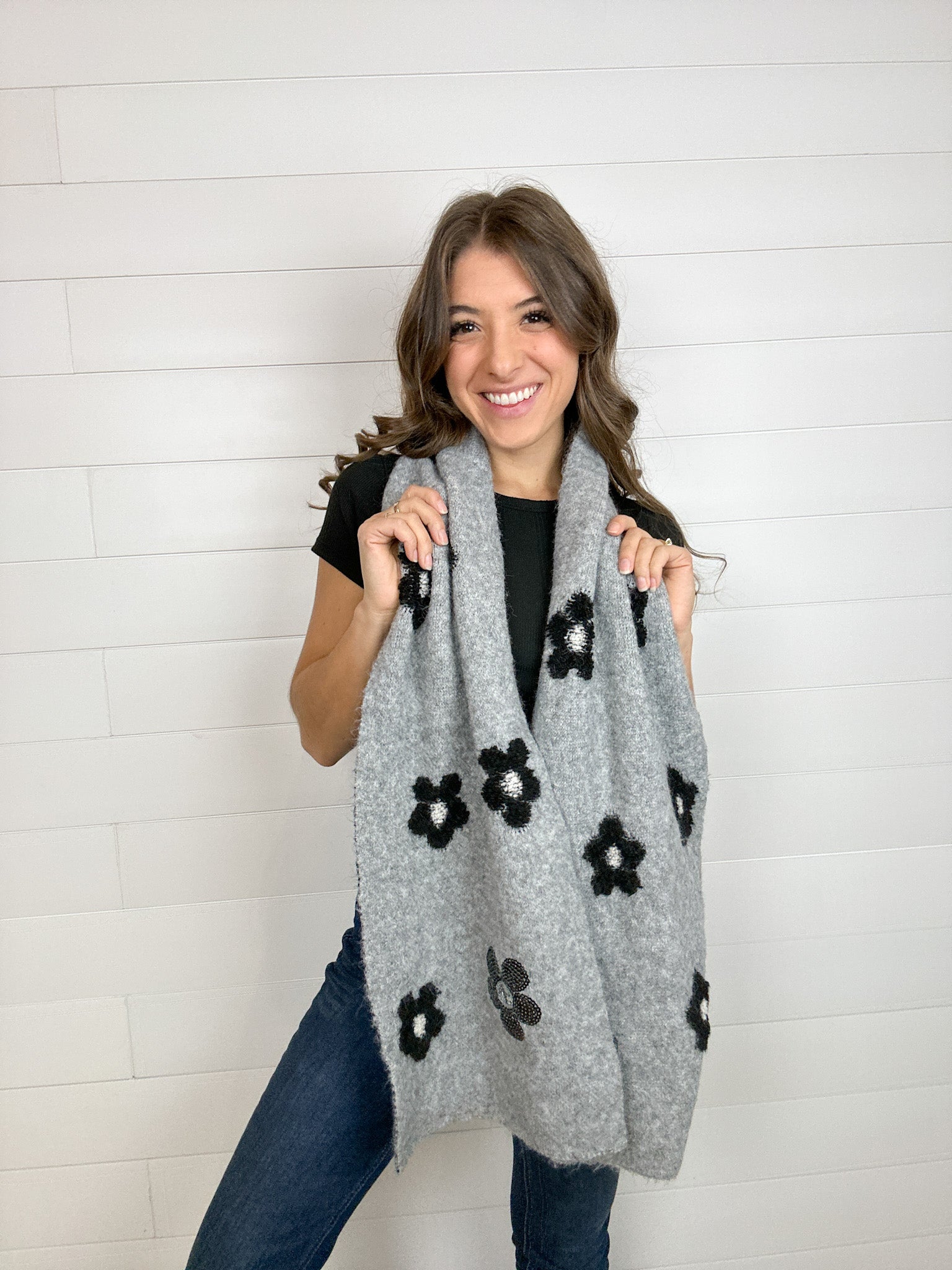 The Daisy Sequin Scarf is the perfect mix of sweet and sparkly. Covered in a jacquard daisy pattern, it features one standout bloom adorned with sequins for a little extra shimmer. Soft, lightweight, and cozy with just a hint of wool, it’s a versatile accessory that adds charm to any outfit. Whether you’re dressing up your everyday coat or layering it over a simple sweater, this scarf brings a touch of whimsy and warmth everywhere you go.