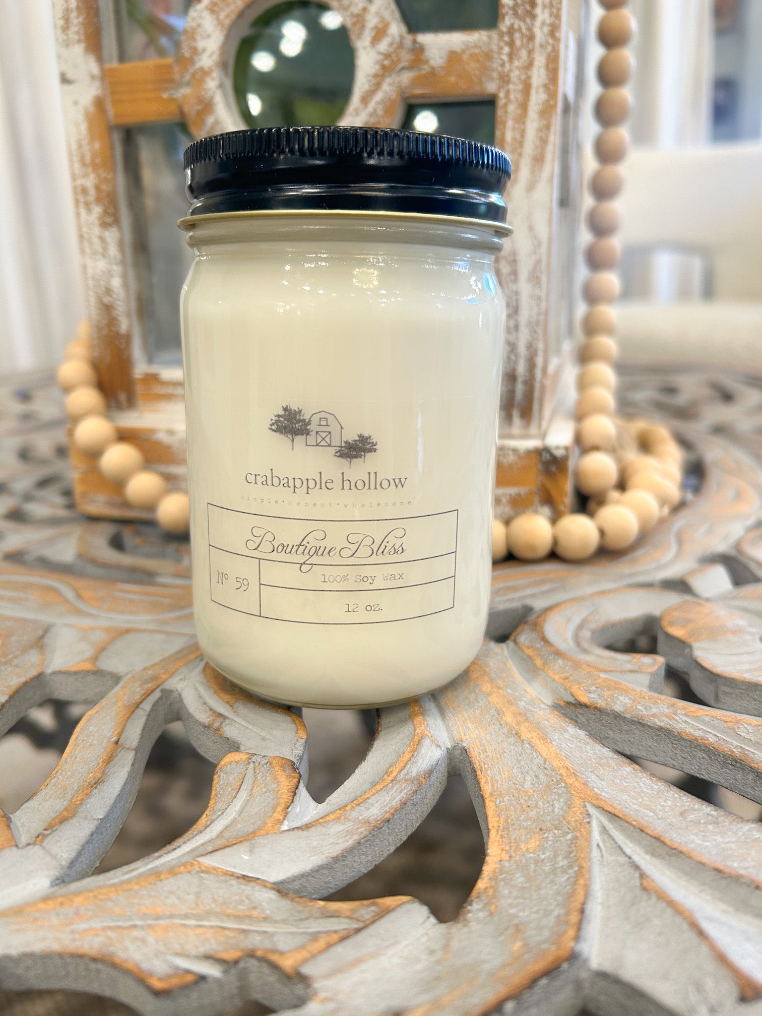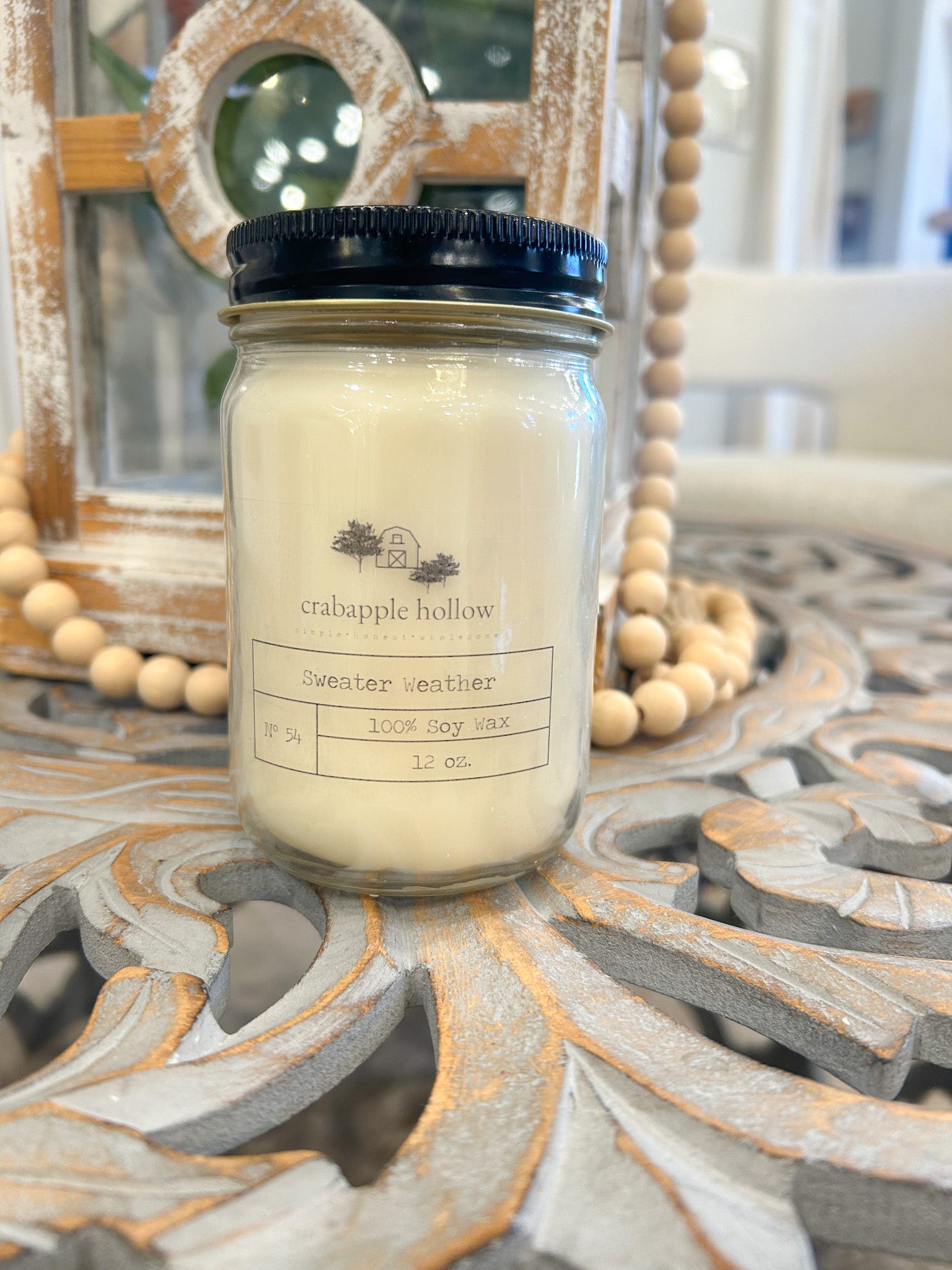 Packaging: Glass jar with black screw-top lid for a simple, modern farmhouse aesthetic