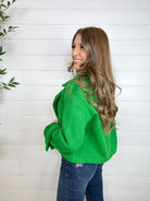 Meet the Harper Notch Collar Cropped Jacket — your new pop-of-color power piece! In a bold, vibrant kelly green that instantly brightens your day, this jacket brings structure and sass in all the right ways. The notch collar and split cuffs add a polished touch, while the cropped length makes it oh-so-perfect for pairing with high-waisted jeans or skirts.