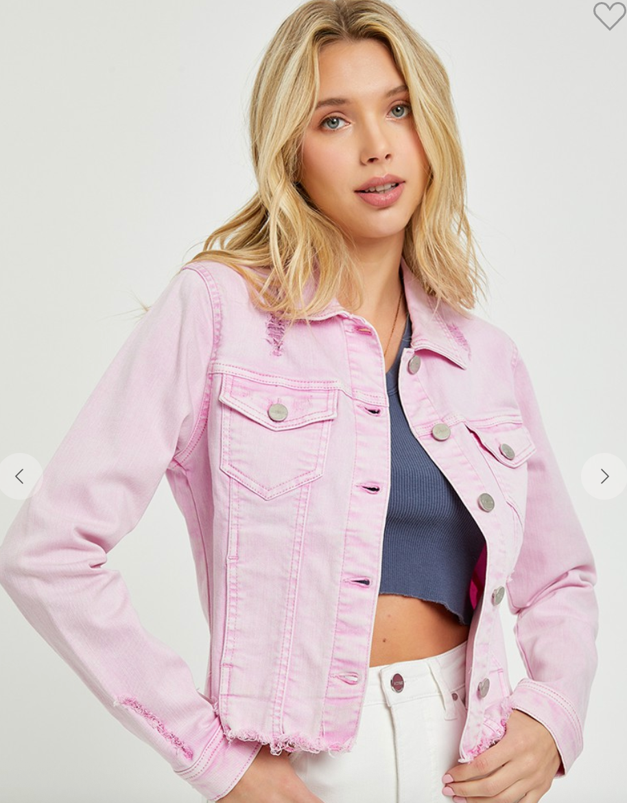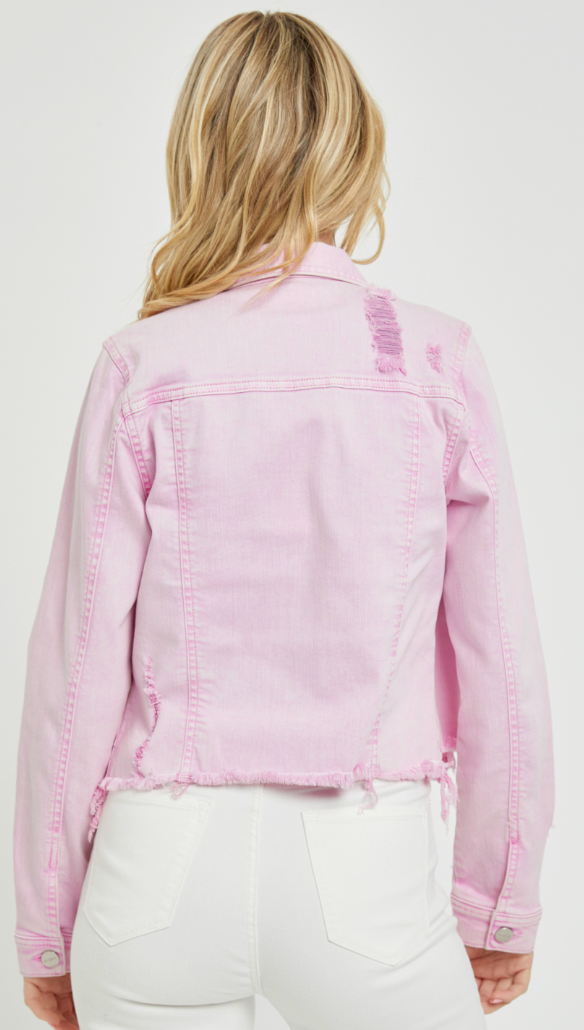 The Irregular Fray Hemmed Pink Jacket is your statement denim layer with personality. Designed in a soft stretch cotton blend, this jacket features a flattering, waist-length cut and an eye-catching irregular frayed hem for that perfectly undone finish. The acid-wash pink hue gives it a vintage-inspired vibeโplus, due to the unique dye process, each piece has its own subtle variation. Structured yet comfortable, itโs the kind of layer that instantly brightens your look.