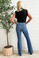 Introducing the KUT Ana Apparent High Rise Flare — the denim that nails that perfect blend of retro charm and modern polish. With a medium-to-dark wash and flattering high-rise fit, these flares elongate your legs and contour in all the right places. The patch pockets add a chic, vintage-inspired touch, while the soft stretch fabric keeps things comfy from morning errands to dinner plans. Style them cuffed for an easy casual vibe or let the 33" inseam give you that long, lean silhouette.