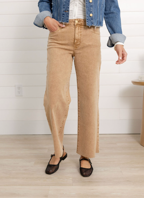 The KUT Chestnut Acid Wash Meg Hi-Rise Denim combines comfort, edge, and effortless style. With a flattering high rise and Fab Ab front panel, these jeans smooth and sculpt while keeping things comfortable. The wide-leg silhouette feels trend-forward, while the raw hem adds just the right amount of modern edge. Finished in a rich chestnut acid wash, they’re the perfect pair to dress up or down.