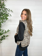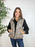 The Leopard Puffer Padded Warm Vest is here to turn chilly days into style moments! With its mix of solid and leopard panels, this cozy cutie combines warmth and attitude in one perfect layer. The high neck and zip-up front keep out the cold, while side pockets and subtle side slits make it easy to move (and stay comfy doing it!).