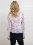 Lettuce Hem Printed Ruched Mesh Top