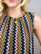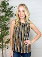 Meet the Liverpool Keyhole Squiggle Print Top — a chic little standout that moves effortlessly from workday polished to weekend playful. With its clean A-line silhouette and vertical squiggle print in black, navy, gold, and white, this top brings just the right amount of personality while staying totally wearable.