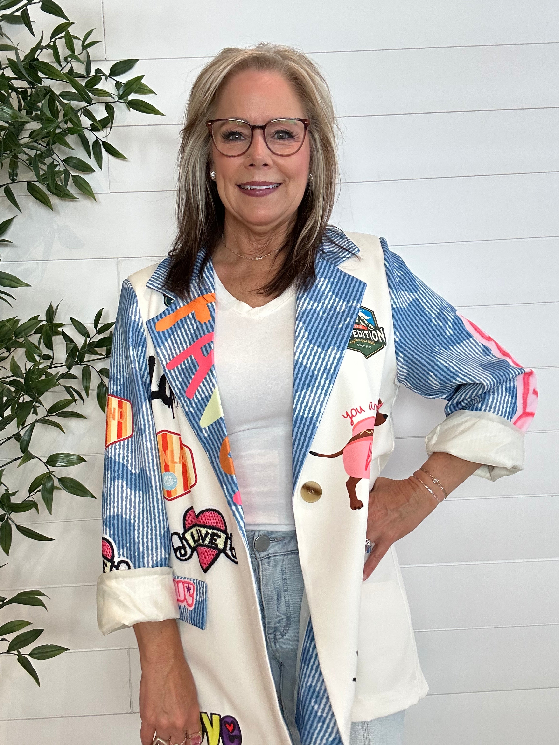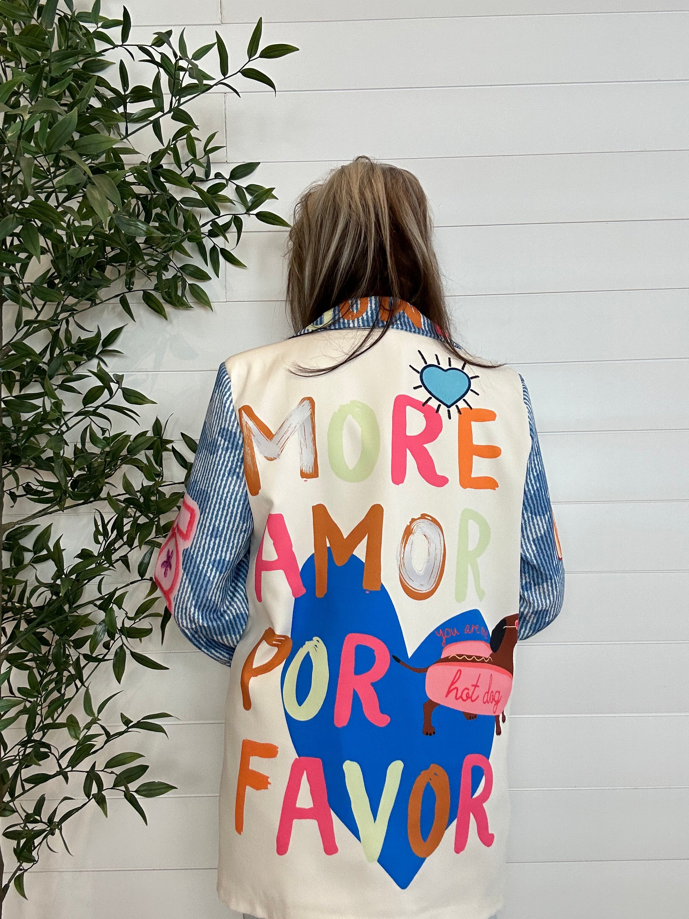 This Blazer with “Love,” “Amour,” and a hotdog graphic is totally unexpected. Oversize structure gets a bold, conversation-starting twist with playful lettering and that cheeky little hotdog detail. It’s polished enough for brunch or the office (hello, statement layer), but fun enough to turn heads everywhere you go. If you love standout pieces that mix sophistication with personality, this one’s calling your name.
