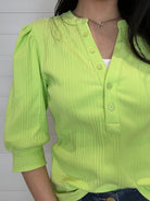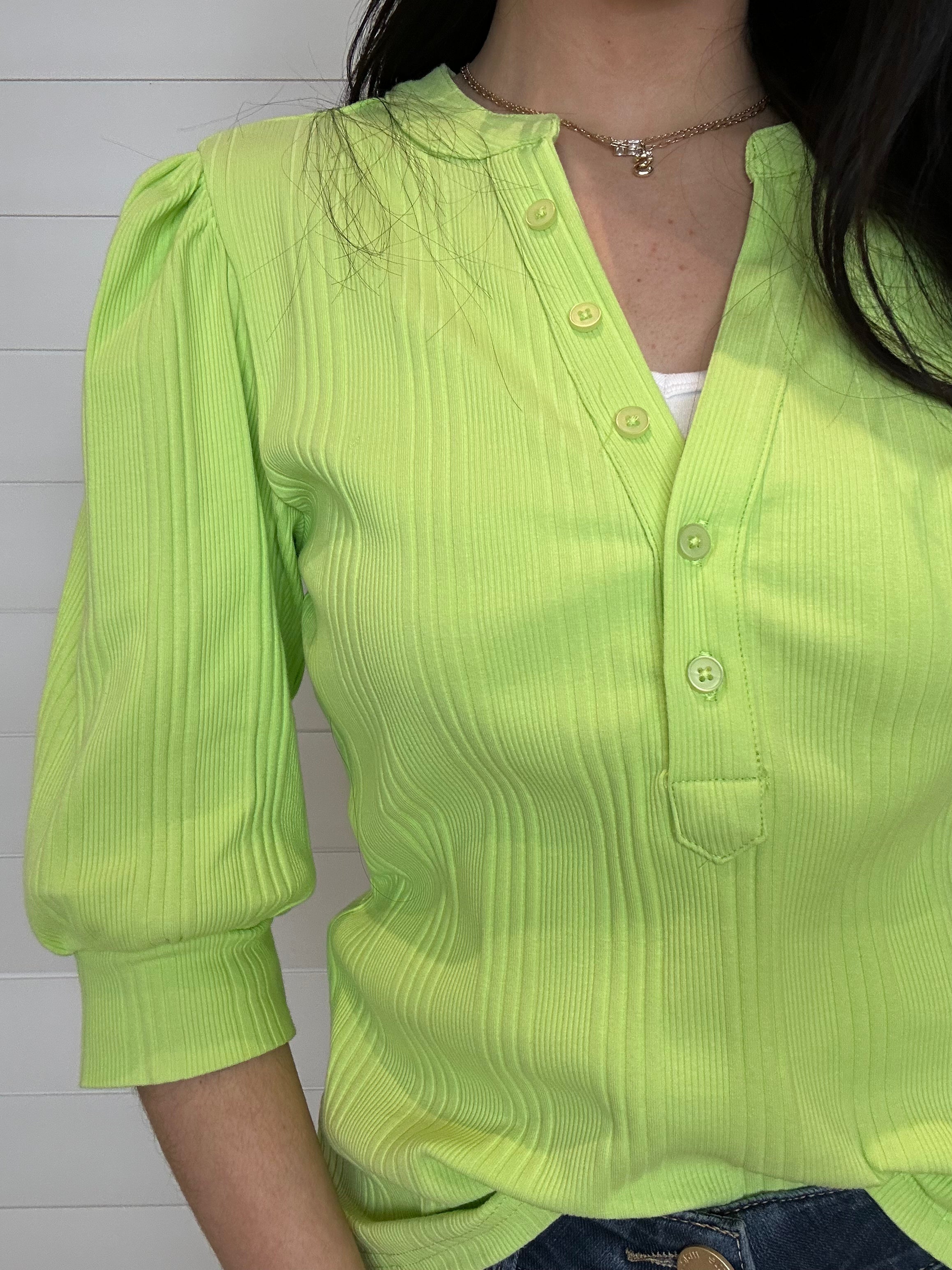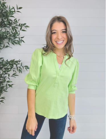 Mac and Me Button Front Elbow Sleeve Ribbed Top