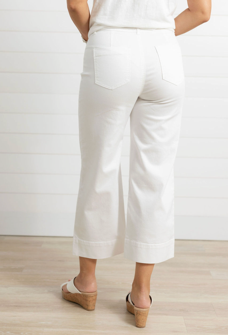 The MB Comfort Stretch Hi-Rise Palazzo Pants are the definition of effortless statement dressing. Designed with a flattering high-rise waist and dramatic wide palazzo leg, these pants bring movement, polish, and comfort together in one standout silhouette. The soft stretch twill fabric moves with you, while tailored details like the fly front, decorative topstitching, and double-button closure keep the look refined. Easy to dress up or down, they’re a closet staple with serious style payoff.