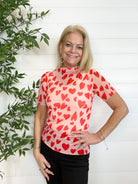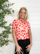 Mesh Short Sleeve Printed Hearts Top