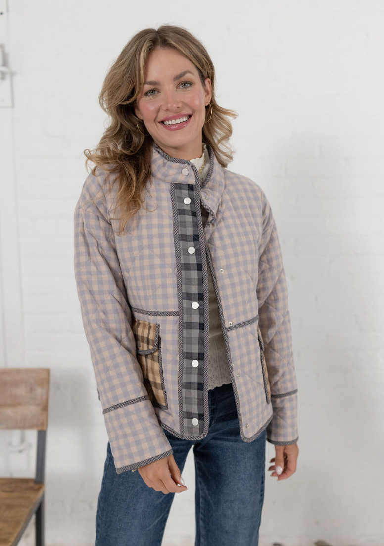The Mixed Plaid Quilted Jacket is where cozy meets cool. With its patchwork of plaid patterns, soft quilted cotton feel, and easy snap-button front, this mixed-media style adds instant charm to chilly days. Thoughtfully finished with roomy front pockets and a lightly padded lining for extra warmth.