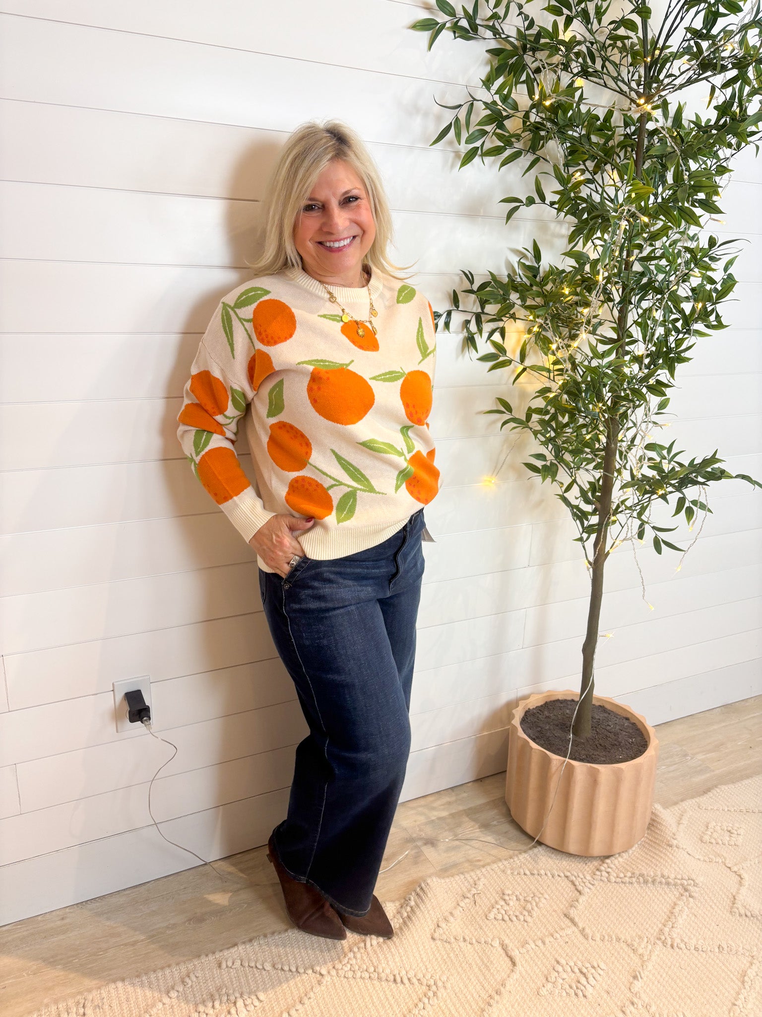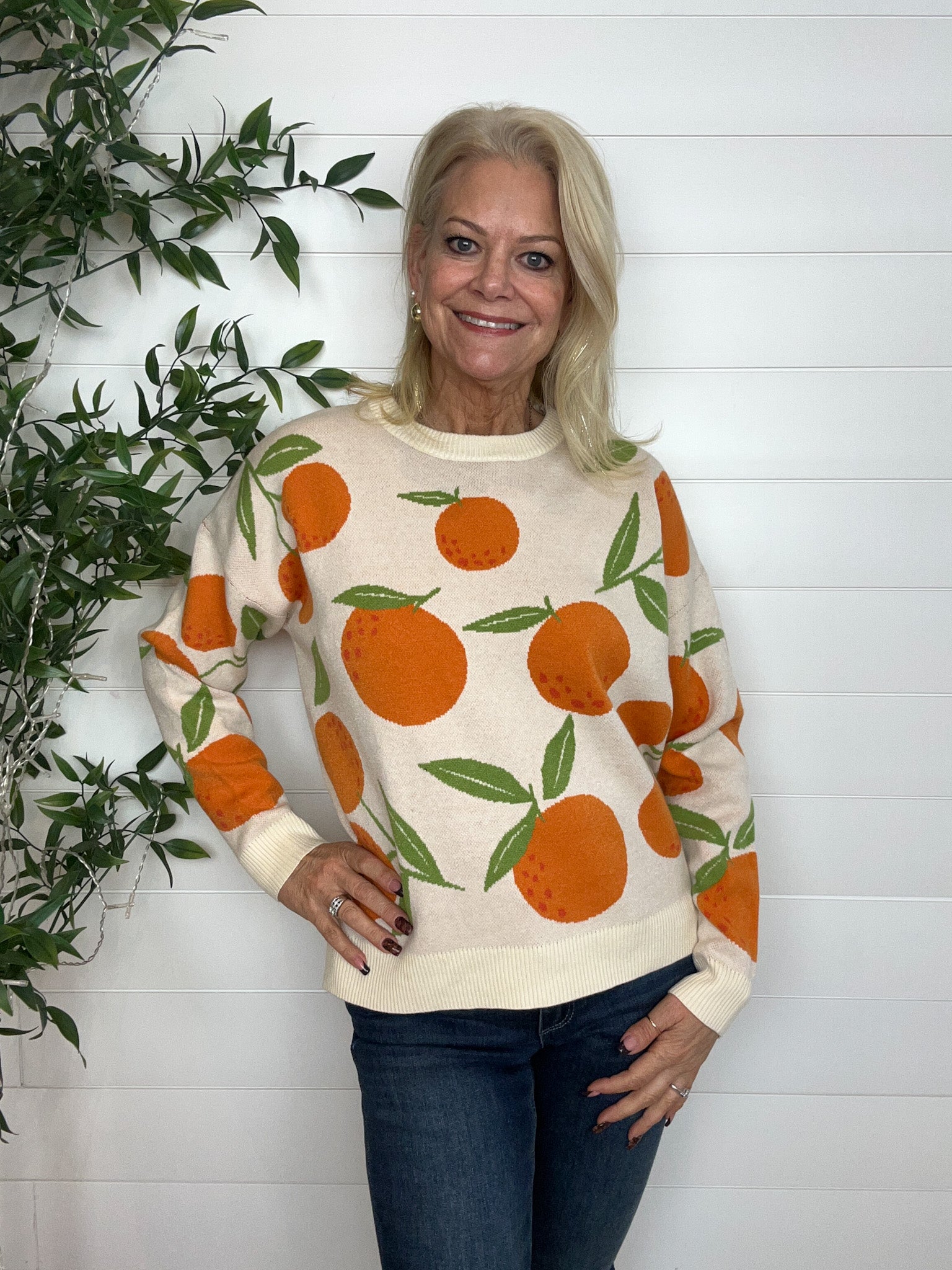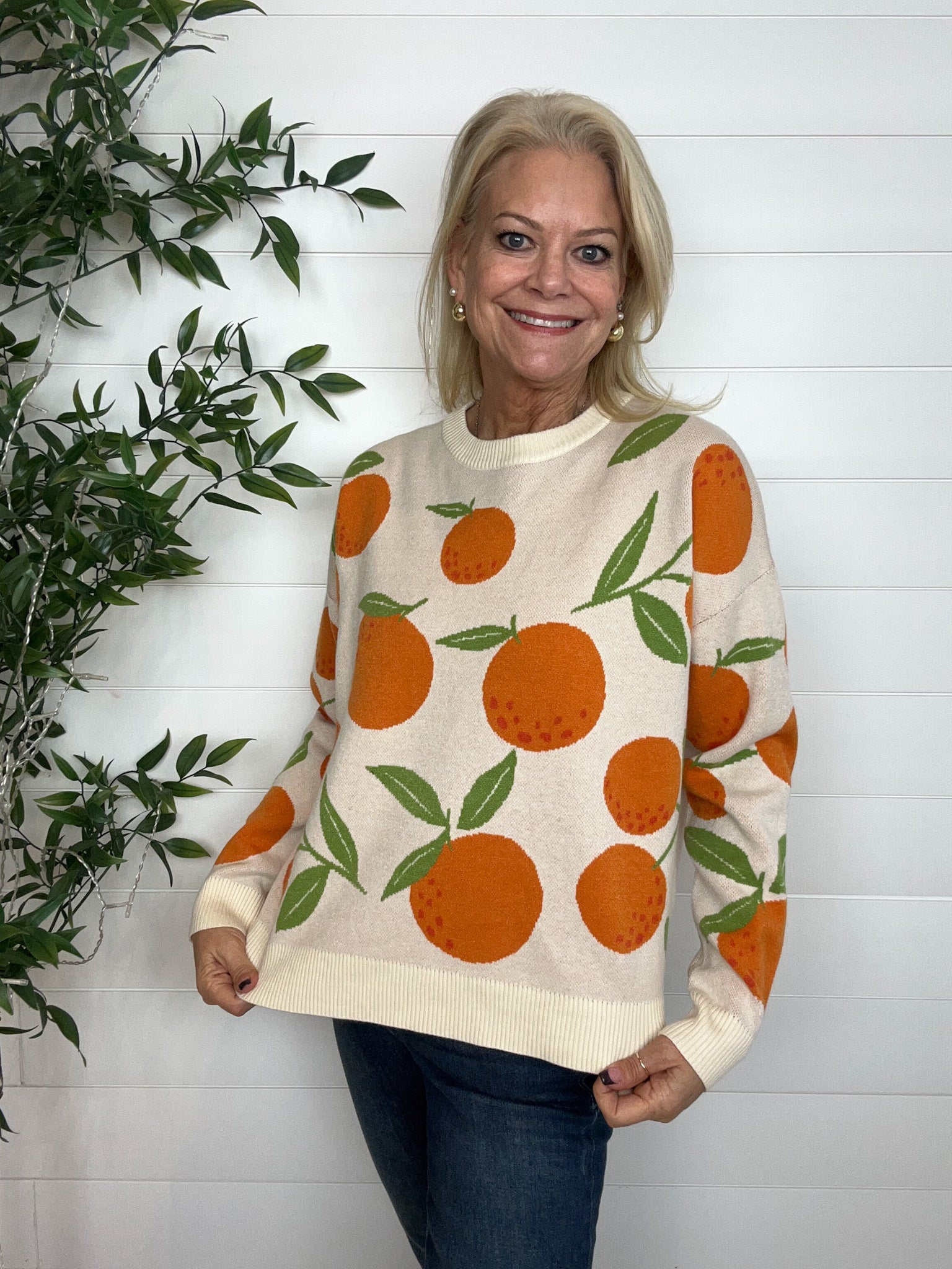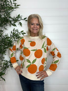 Bright, bold, and irresistibly fun β the Oranges Jacquard Pullover brings a juicy pop of personality to chilly-day dressing! This heavy knit features oversized orange motifs woven into a soft jacquard fabric, giving it that perfectly quirky-yet-polished vibe. With a classic crew neckline and long sleeves, itβs cozy, charming, and guaranteed to spark compliments.