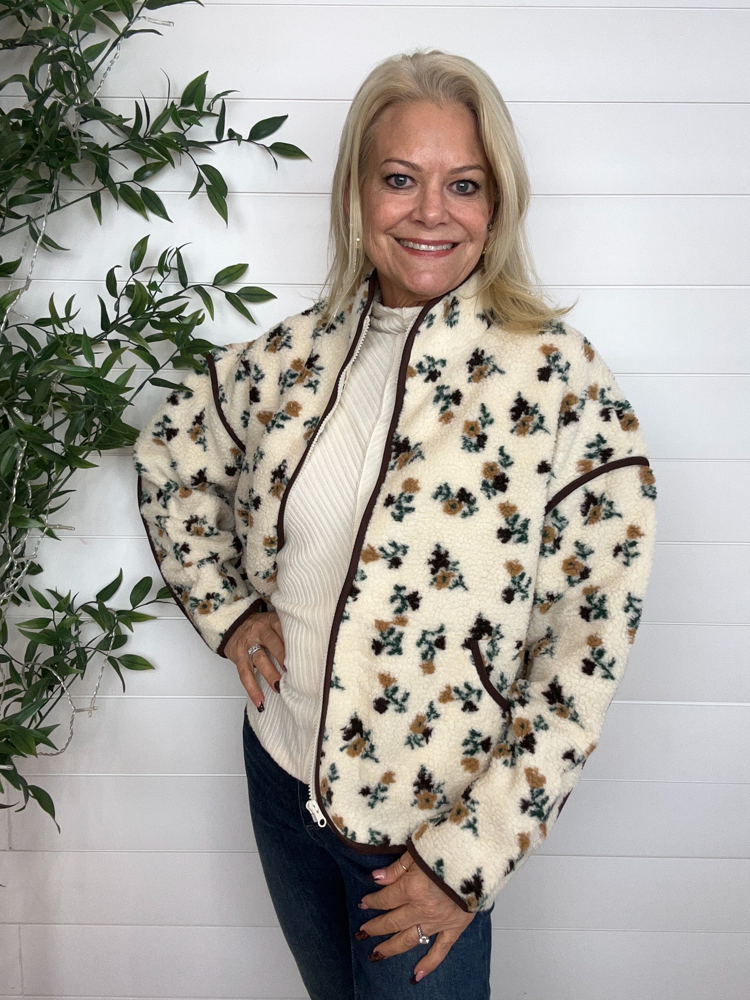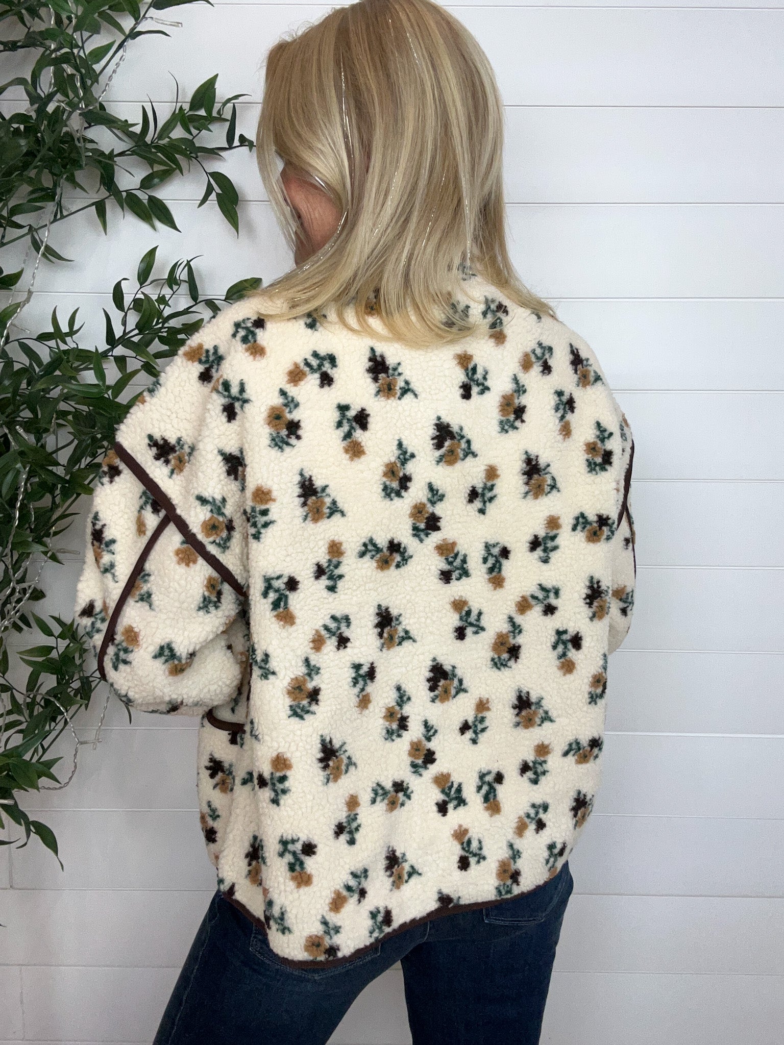 Oversize Floral Print Sherpa Jacket