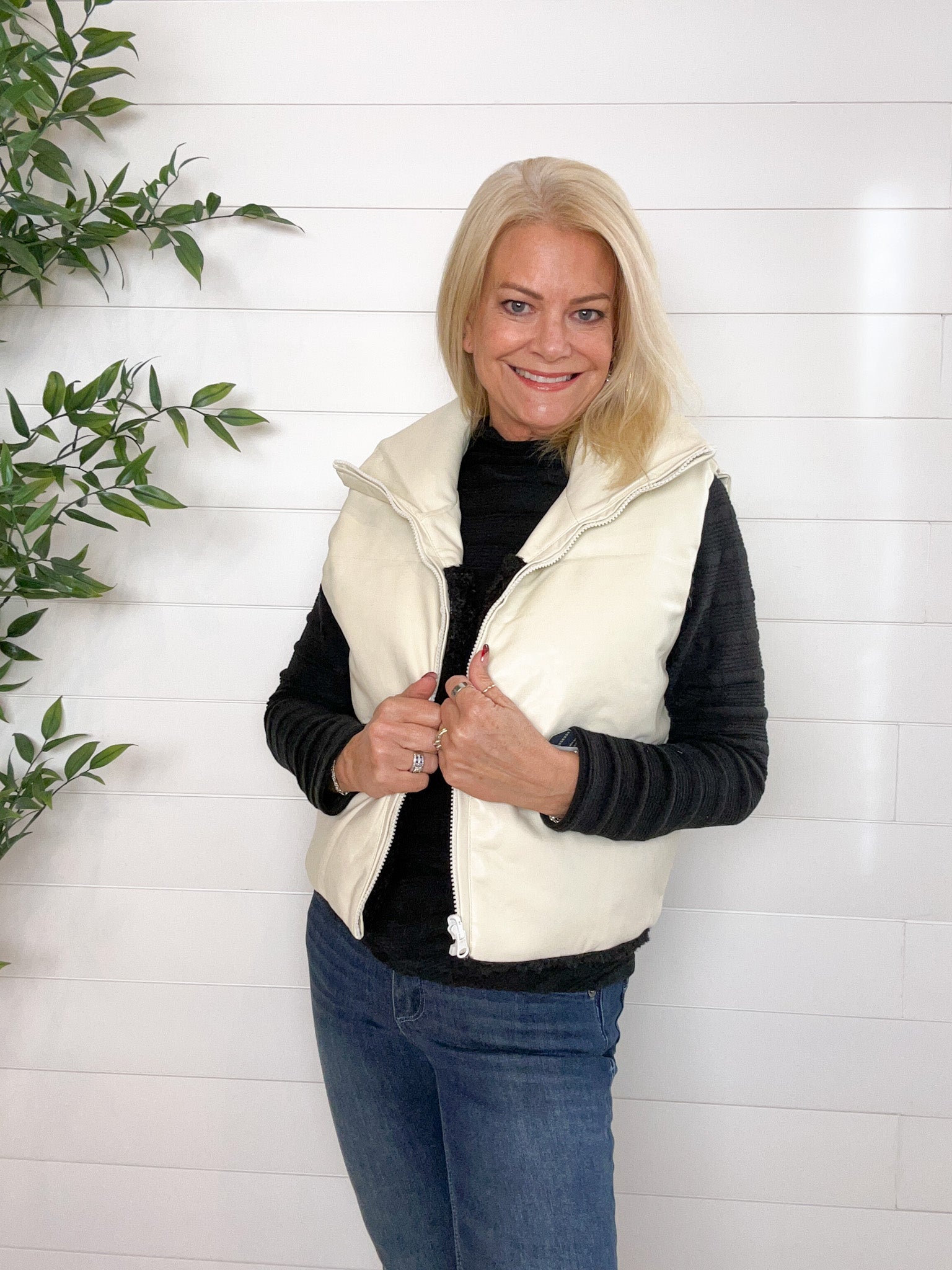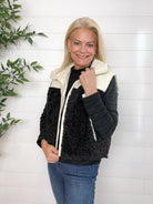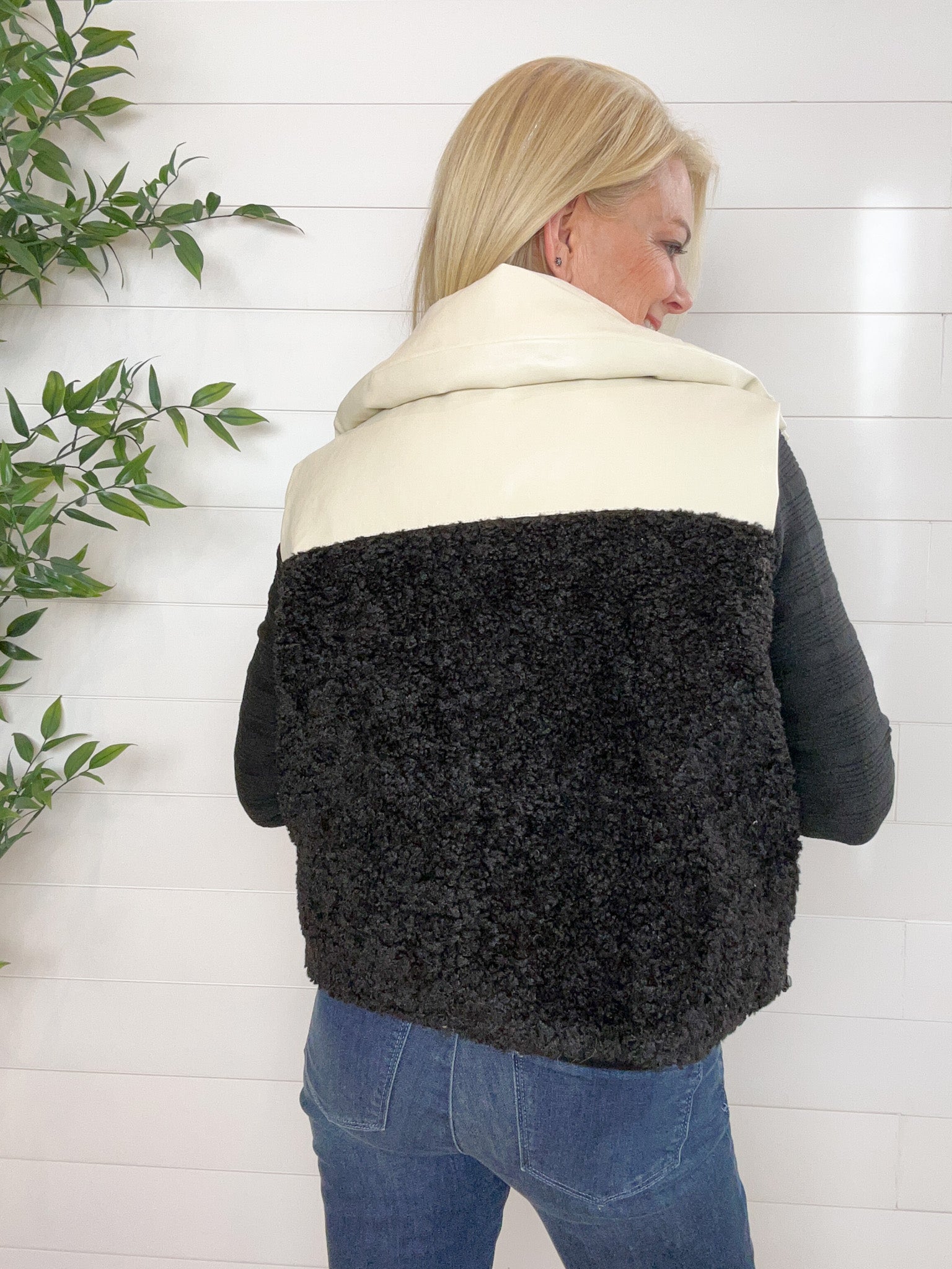 The Reversible Sherpa & Vegan Leather Vest is your new go-to for effortless fall layering! One side shows off plush, textured sherpa panels for a soft and snuggly look, while the flip side transforms into sleek, smooth vegan leather for instant edge. With zippered front pockets on the sherpa side and a versatile zip-front closure, this piece delivers both warmth and wow factor.