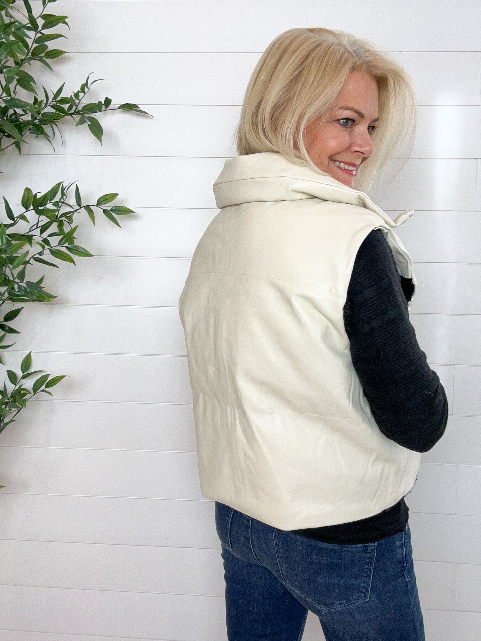 Layer over a lightweight turtleneck or flannel for a cozy casual look—or flip to the leather side for a night out with jeans and booties.