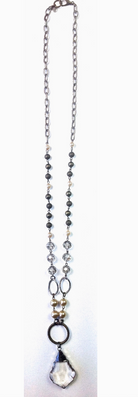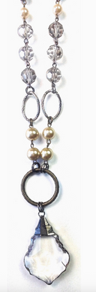 Rosaried Pearl Necklace w/Chandelier Pendant