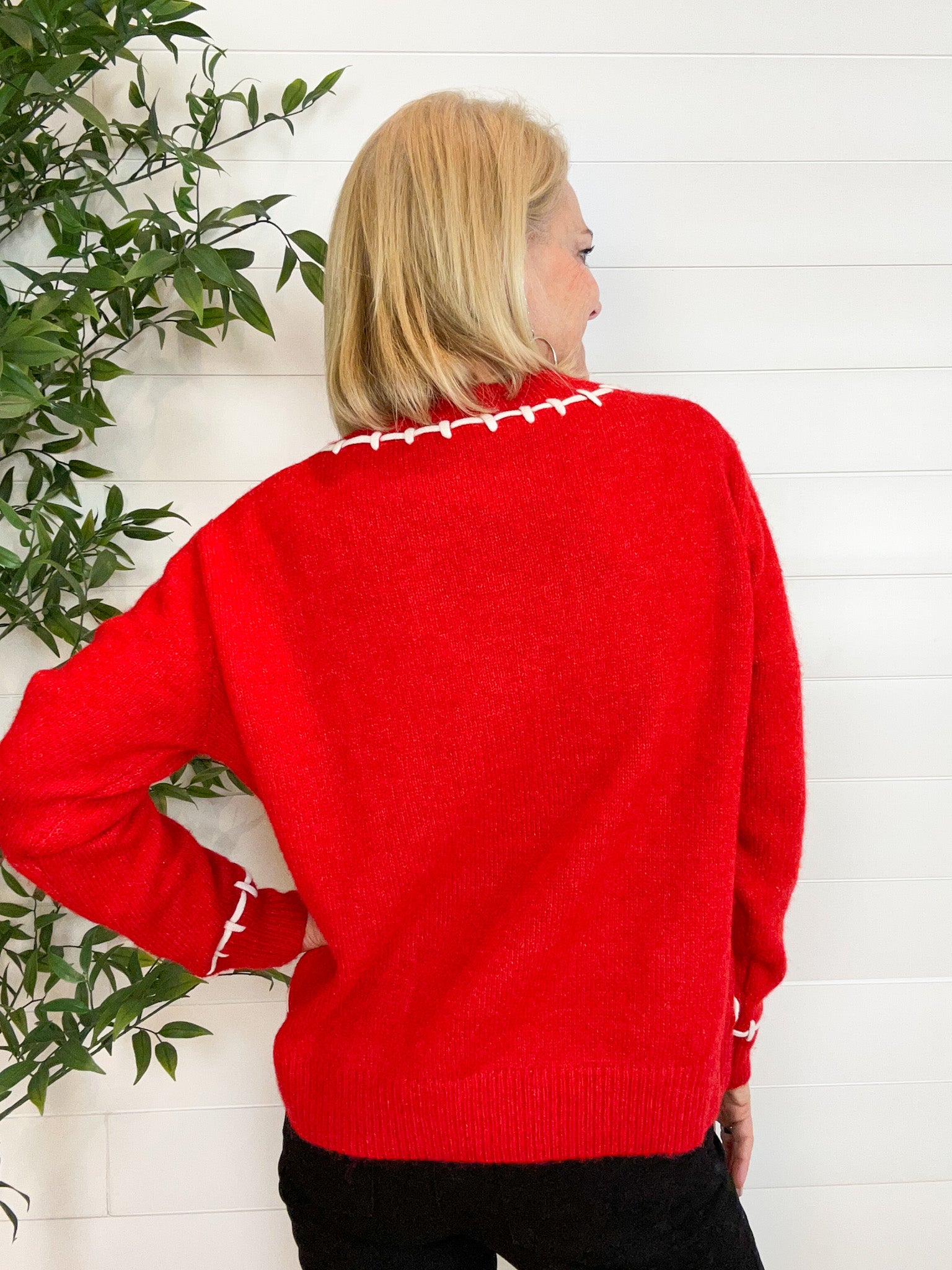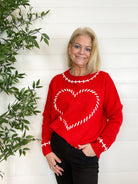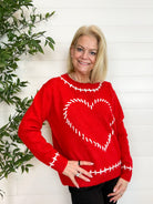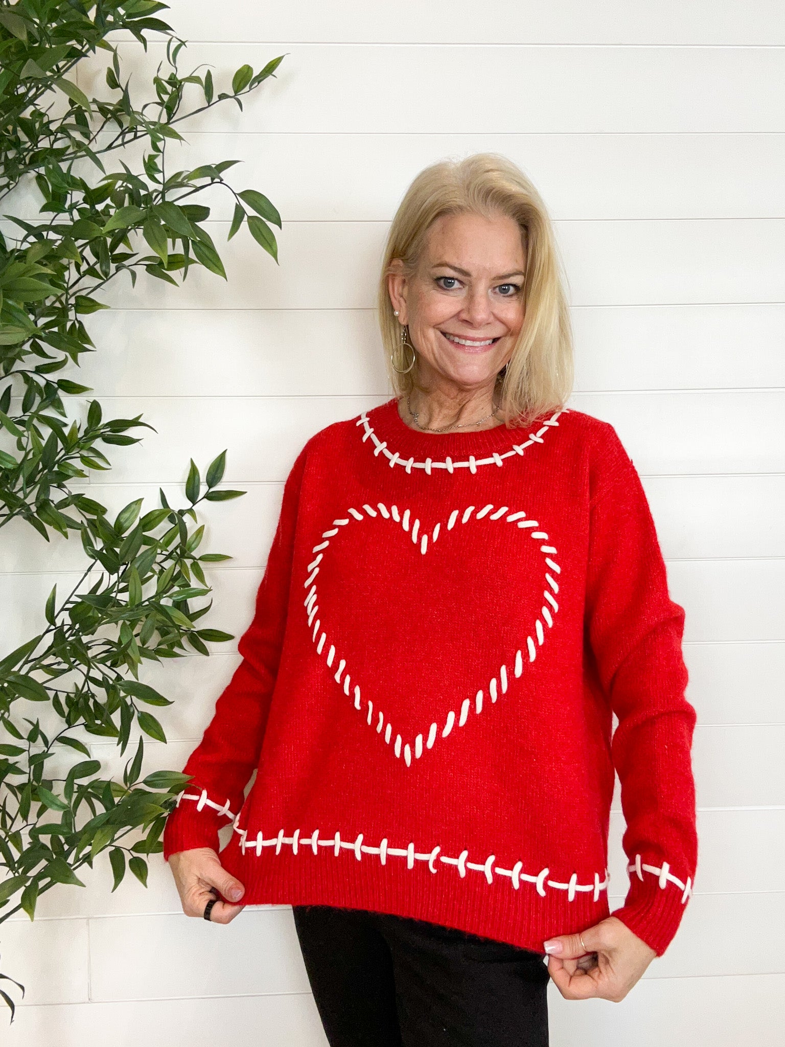 The Stitched Heart Outline Sweater is all about subtle charm and thoughtful design. Featuring a delicately stitched heart outline at the center, this sweater showcases beautiful detailing inspired by hand-done craftsmanship rather than bold graphics. Coordinating stitch accents trace the neckline, hem, and wrists, giving the piece a cohesive, elevated finish. With long sleeves, a wide neckline, and a soft, slightly stretchy knit, it drapes effortlessly for an easy, feminine feel.