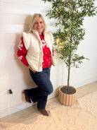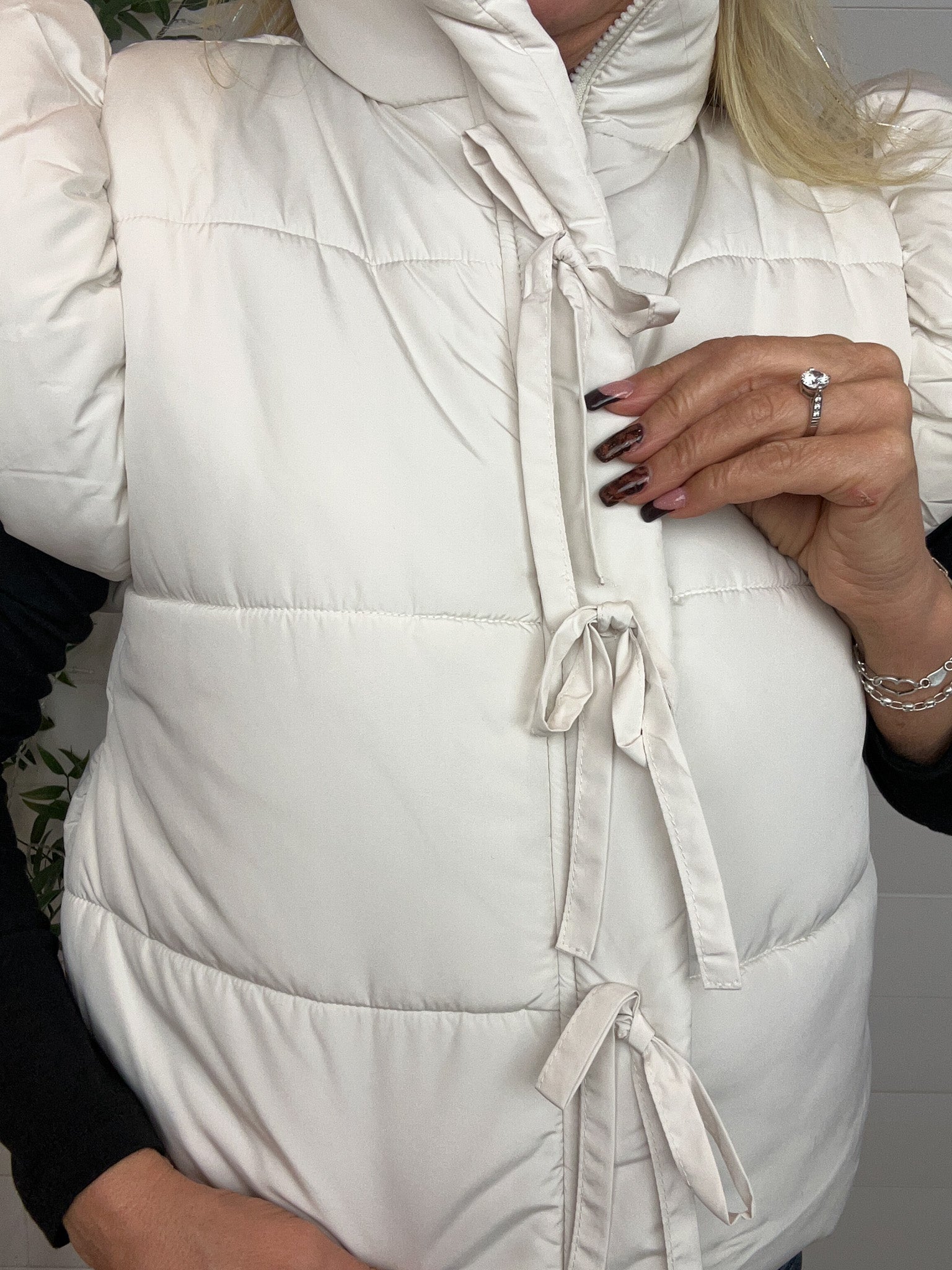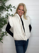 Meet the Tie Front Flutter Detail Vest β a playful, polished layer that instantly elevates your outfit. With its flutter-style shoulder detail and adorable bow-tie accent on the front, this sleeveless puffer-style vest brings a feminine twist to classic outerwear. The mock neck adds extra coziness, while the fully lined design keeps it sleek and structured. Perfect for adding charm (and warmth!) to any chilly-day look.