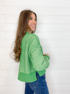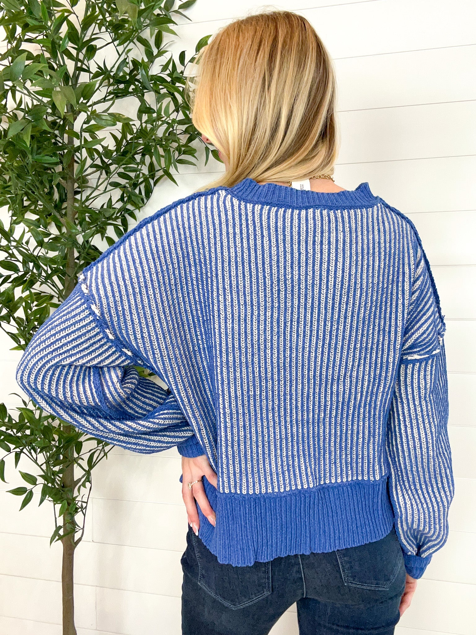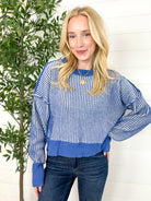 Meet your new go-to for cozy-chic days — this Two Tone Striped Casual Sweater Top is all about easy comfort with timeless style. Designed with a relaxed, oversized fit and soft drop shoulders, it drapes just right for that effortless “I woke up like this” vibe. The two-tone ribbing add a classic touch, while the solid hem and cuffs keeps the look polished.