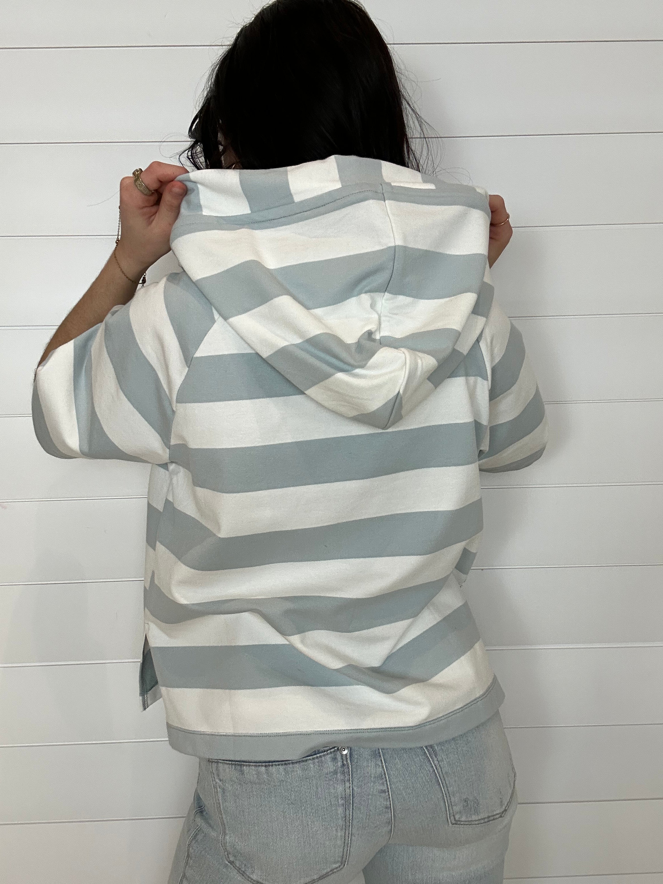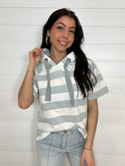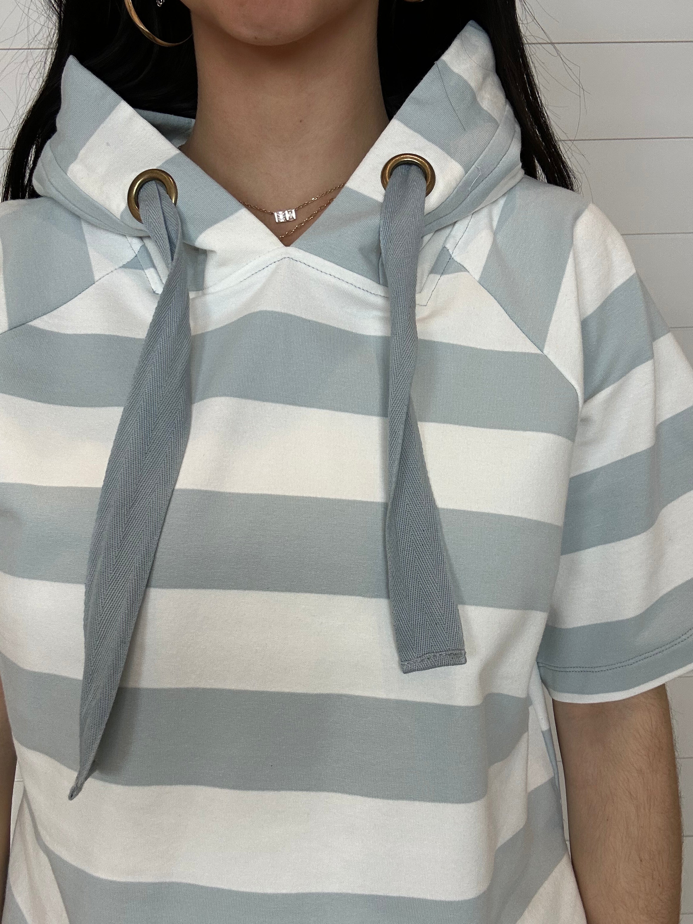 This Wide Striped Hoodie Short Sleeve Top is that perfect blend of laid-back and on-trend. Designed with a relaxed fit and breathable knit fabric, it’s made for warm-weather days when you still want a little sporty edge. The soft attached hood with coordinating drawstrings adds a casual-cool vibe, while the wide stripes keep it feeling fresh and modern. The straight hem hits just above the hip for an easy, throw-on-and-go silhouette you’ll reach for again and again.