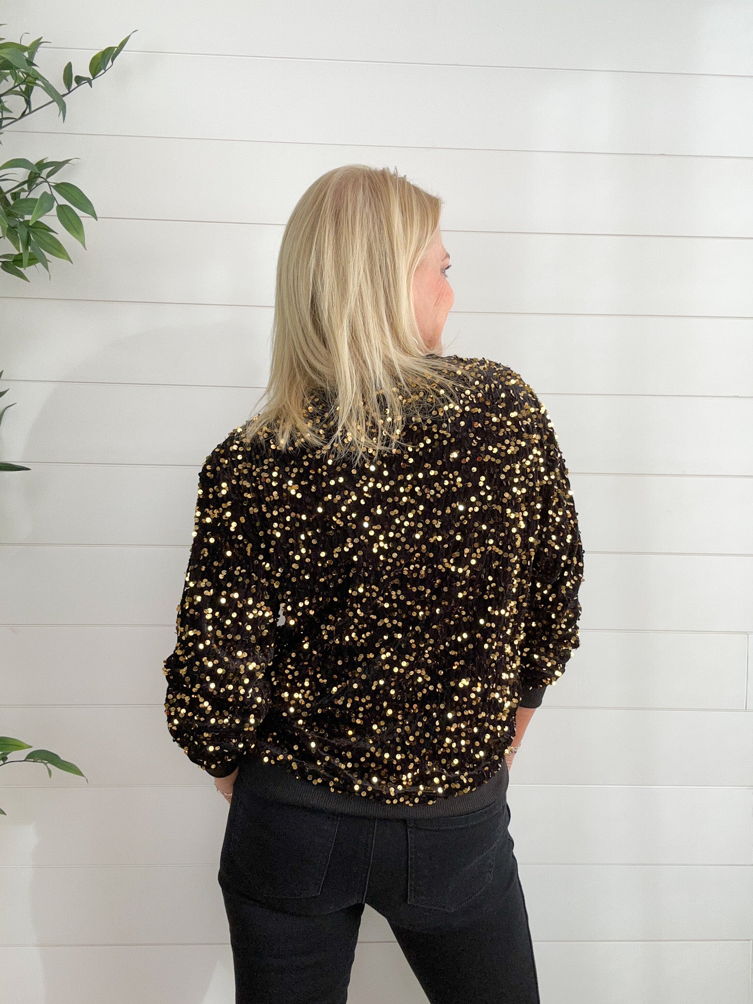 Get ready to sparkle in the Allover Sequin Velvet Pullover! This shimmering showstopper is covered in sequins from top to bottom, adding instant glam to any outfit. With its cozy drop-shoulder fit and soft ribbed trim, it blends comfort with full-on festive energy—perfect for nights out or holiday gatherings.