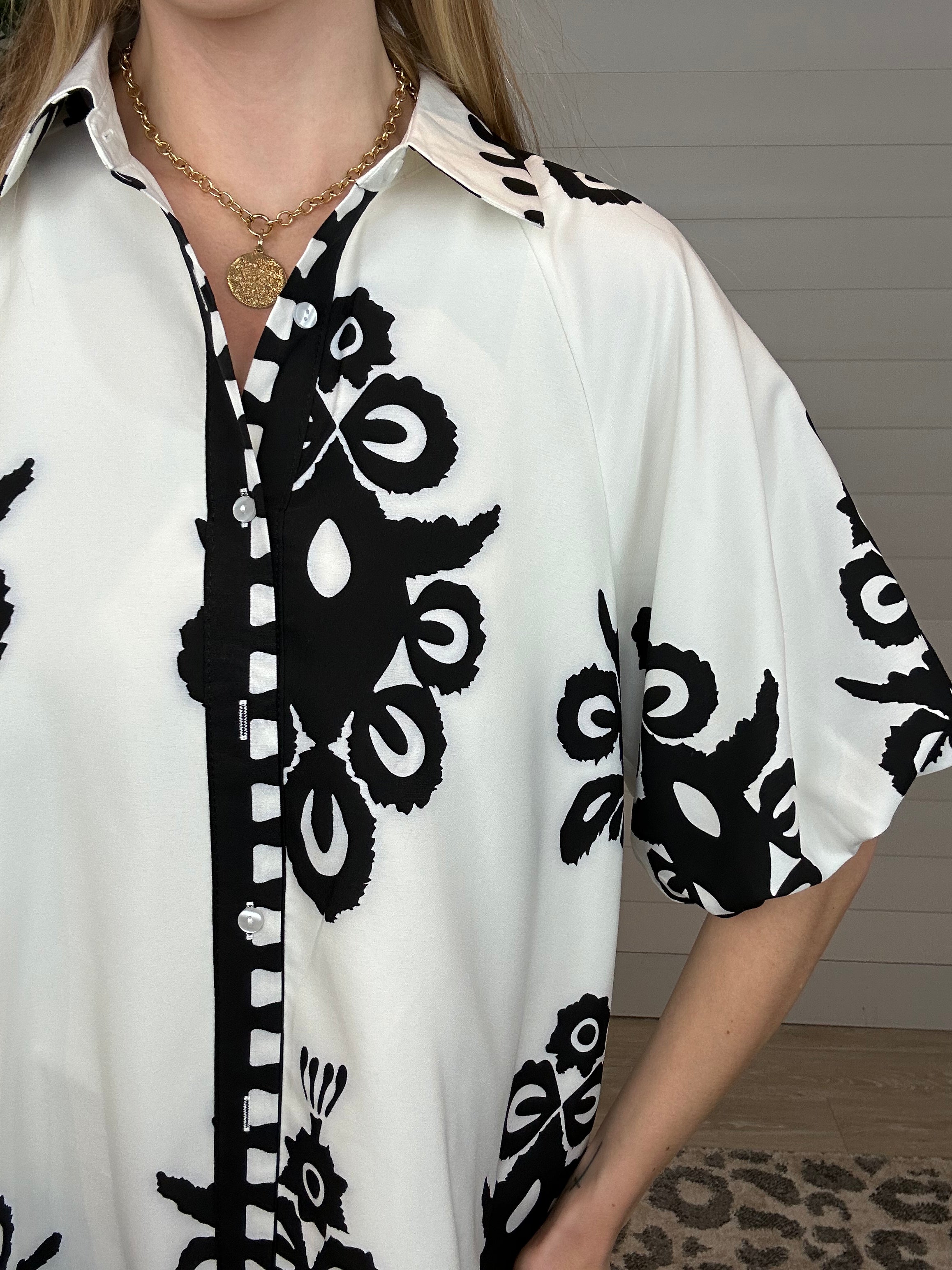 This Bold Print Shirt Style Mini Dress is your instant outfit moment. With its eye-catching print and classic shirt dress silhouette, it strikes that perfect balance between polished and playful. The structured collar and button-front design keep it tailored, while the mini length and vibrant pattern bring all the fun, fashion-forward energy. It’s the kind of piece that turns heads—in the best way.