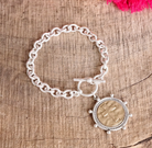 This bracelet blends boho charm with a timeless edge, featuring a worn-tone finish and a bold cross coin detail. Perfect for adding character to your wrist stack or standing out on its own.* 1" cross coin pendant adds a bold focal point * 6.5" cable chain for a comfortable fit