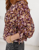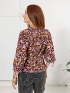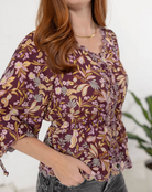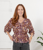 This everyday woven top features long sleeves with ties, a V-neck, scallop edge embroidery, and a peplum hem. Plus, its abstract floral print in neutral-pink shades make it effortless to pair with all your wardrobe favorites.