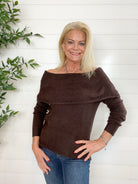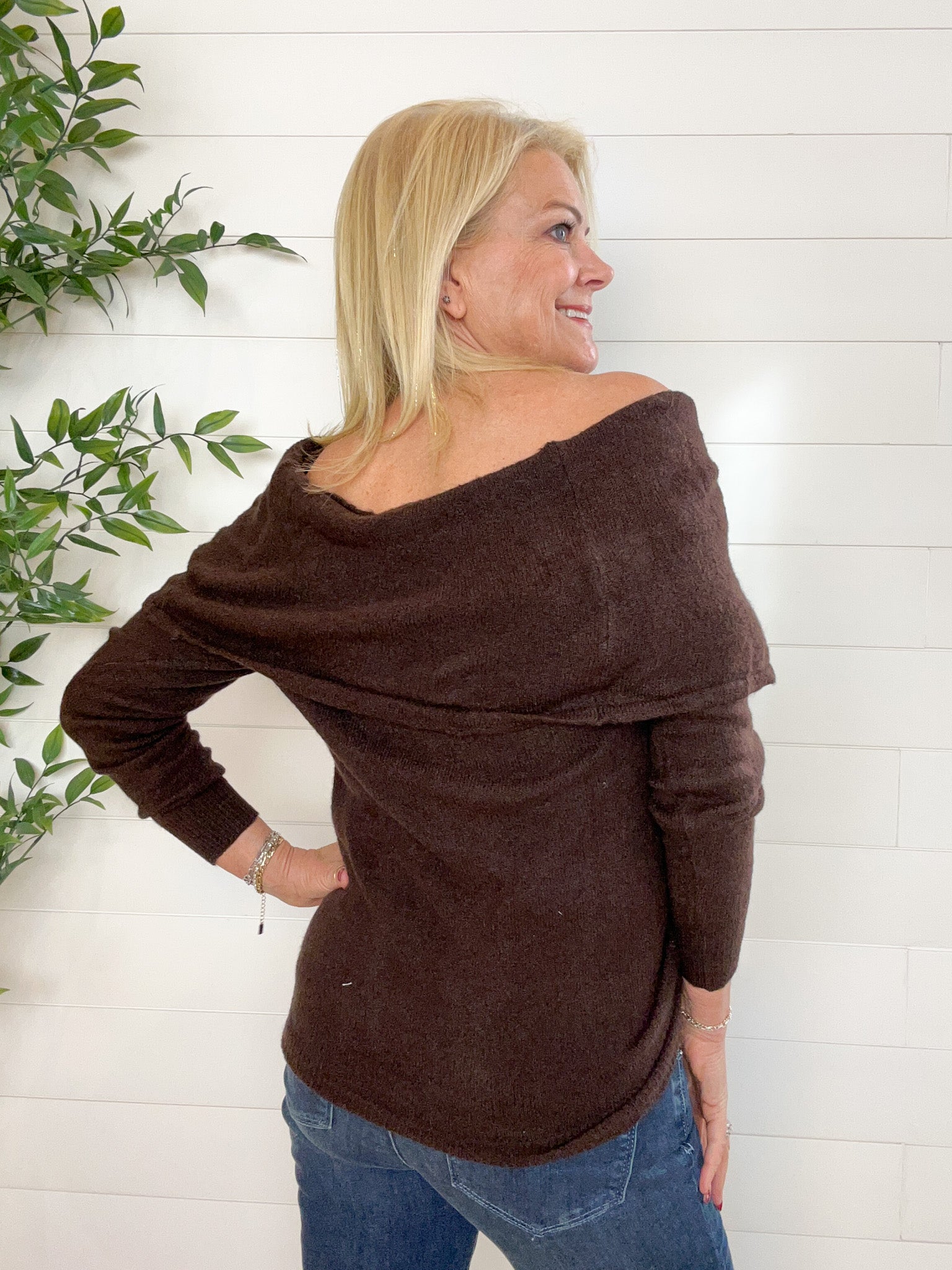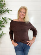 The Fold Over Neckline OTS Sweater is your new favorite way to stay cozy and chic. Designed with a wide fold-over neckline that drapes gracefully off the shoulders, this sweater strikes that perfect balance between casual comfort and effortless elegance. The soft, stretchy knit hugs just right—making it easy to dress up or down for any occasion.