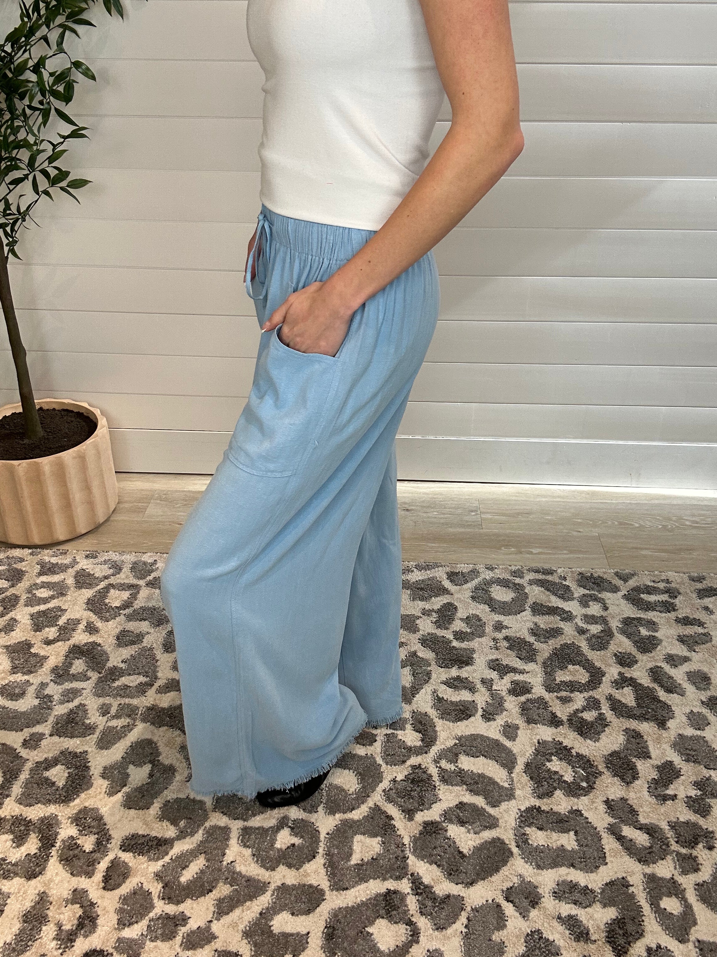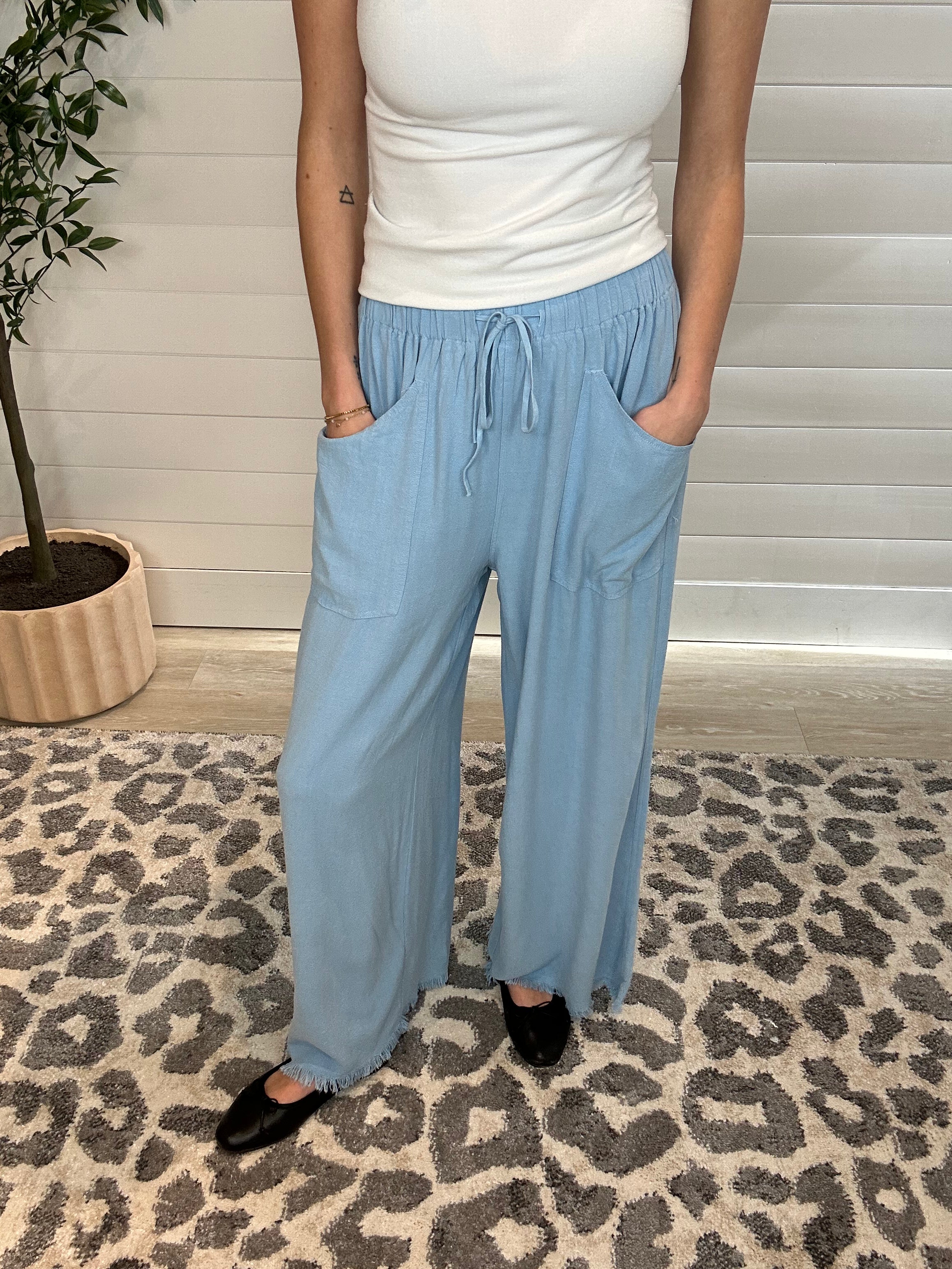 Meet your new go-to for laid-back polish: these Frayed Cropped Wide Leg Pants. Crafted from a lightweight linen blend, they’re breathable, easy, and made for those warm Minnesota days when you still want to look put together. The wide leg silhouette brings that on-trend, relaxed vibe we’re loving this season, while the cropped length and frayed hem add just the right touch of modern edge. Oh—and yes, they have pockets (because we refuse to live without them).