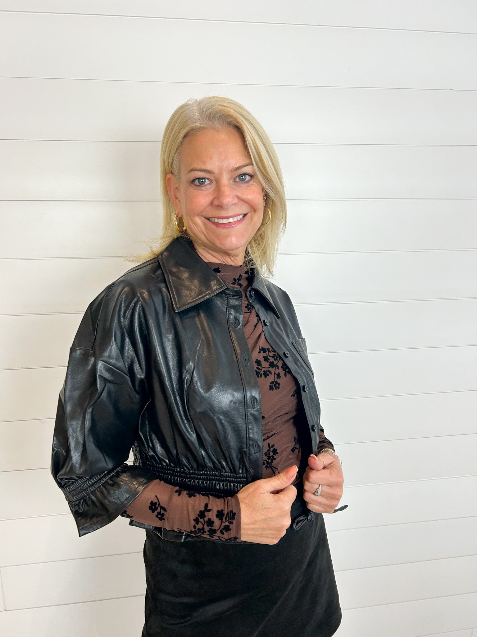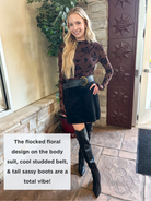 Hi-Neck Floral Mesh Flocked Bodysuit