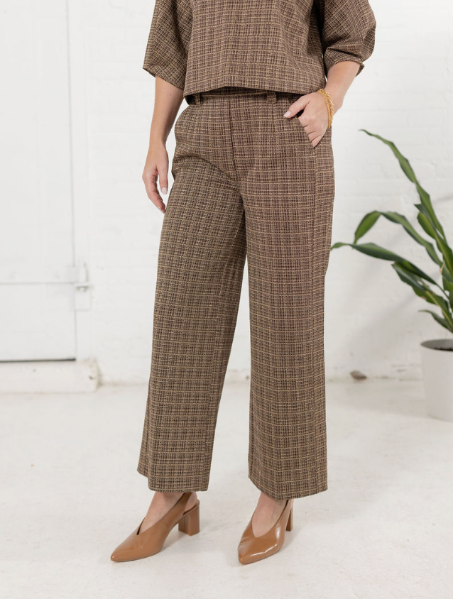 The plaid Wide Leg pant is fitted through the hips with a relaxed, wide opening through the legs. Made with "Ab"leisure design details that strike a balance between comfortable and polished.