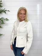 The Jewel Button Classic Cardigan channels old-money elegance with its tailored silhouette and sparkling button details. Designed to nip in slightly at the waist, it flatters your figure while keeping things refined. The soft, luxe knit and front pocket accents add a touch of understated glamour worthy of classic Hollywood.