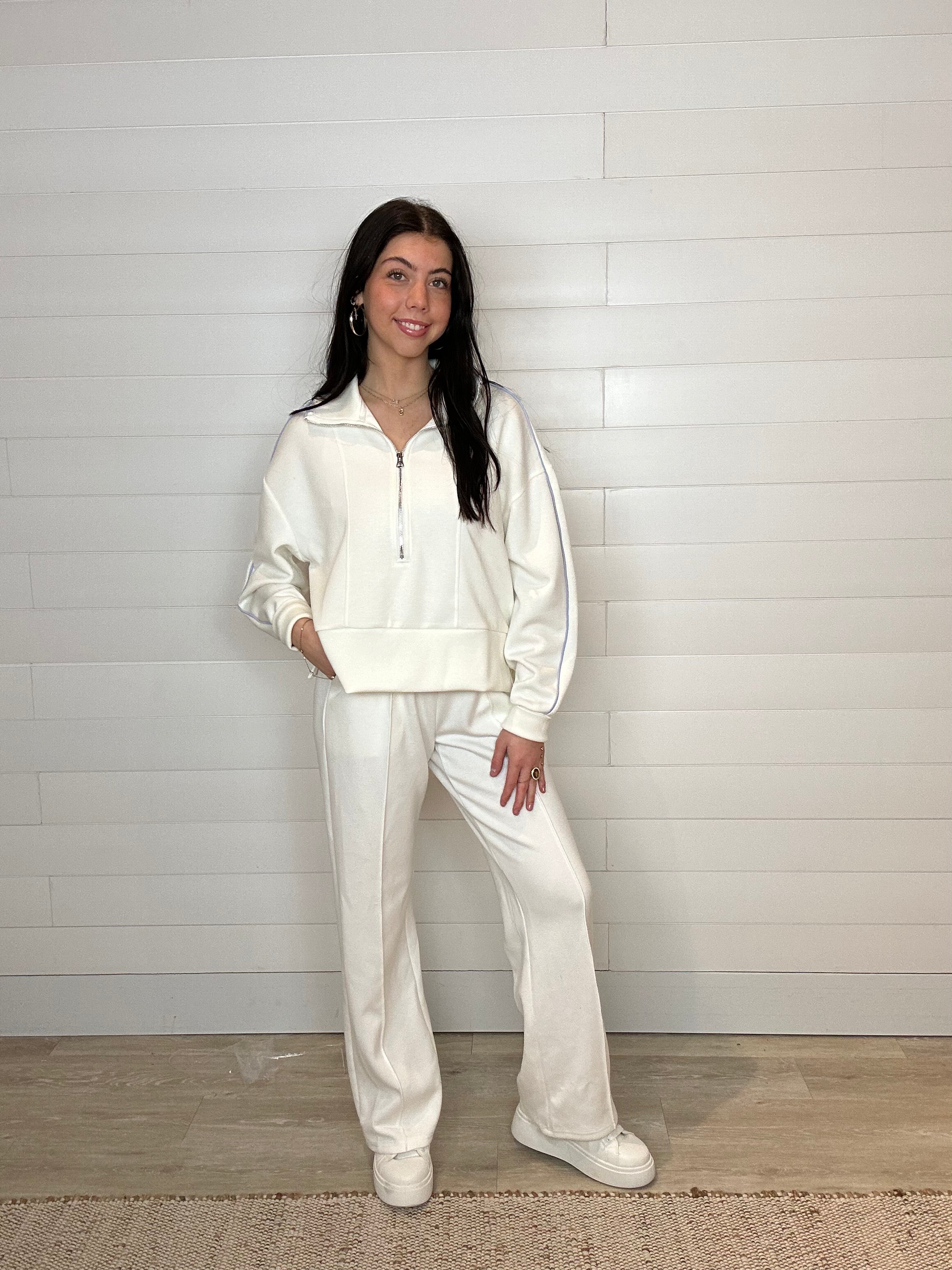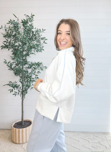 The Mac and Me Quarter Zip Sweatshirt is that perfectly relaxed layer you’ll throw on again and again. Designed with a sporty quarter-zip neckline and an easy, comfortable fit, it’s the ultimate blend of cozy and polished. Whether you zip it up for a sleek look or leave it slightly open for that laid-back vibe, this piece delivers effortless athleisure style with everyday versatility. Trust me — this is the one you’ll keep by the door.