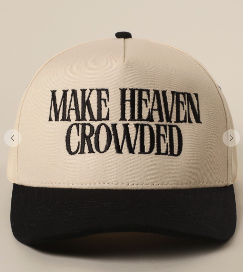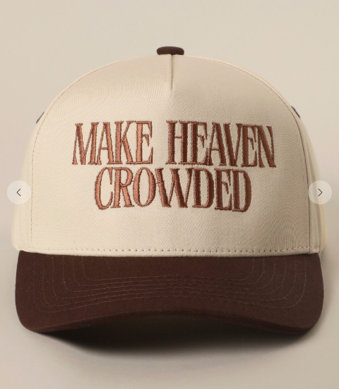 - "MAKE HEAVEN CROWDED" Lettering Logo Embroidery - 5-Panel Two-Tone Trucker Hat - 100% Cotton Canvas Hat - Embroidered In the USA