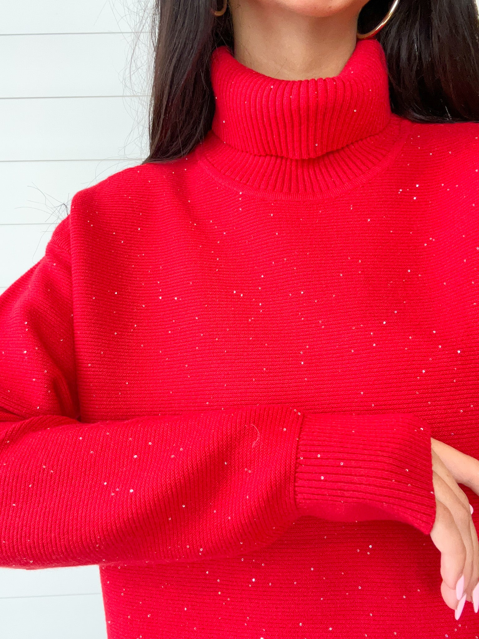 Micro, clear sequins sprinkled all over the sweater give it a subtle sparkle!