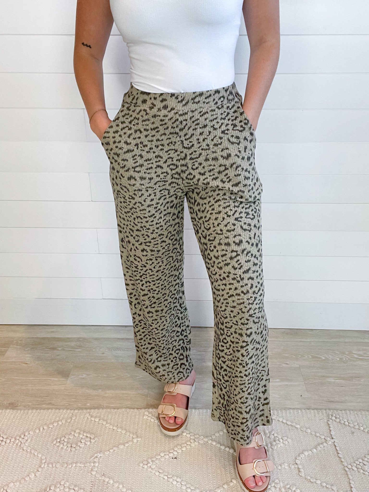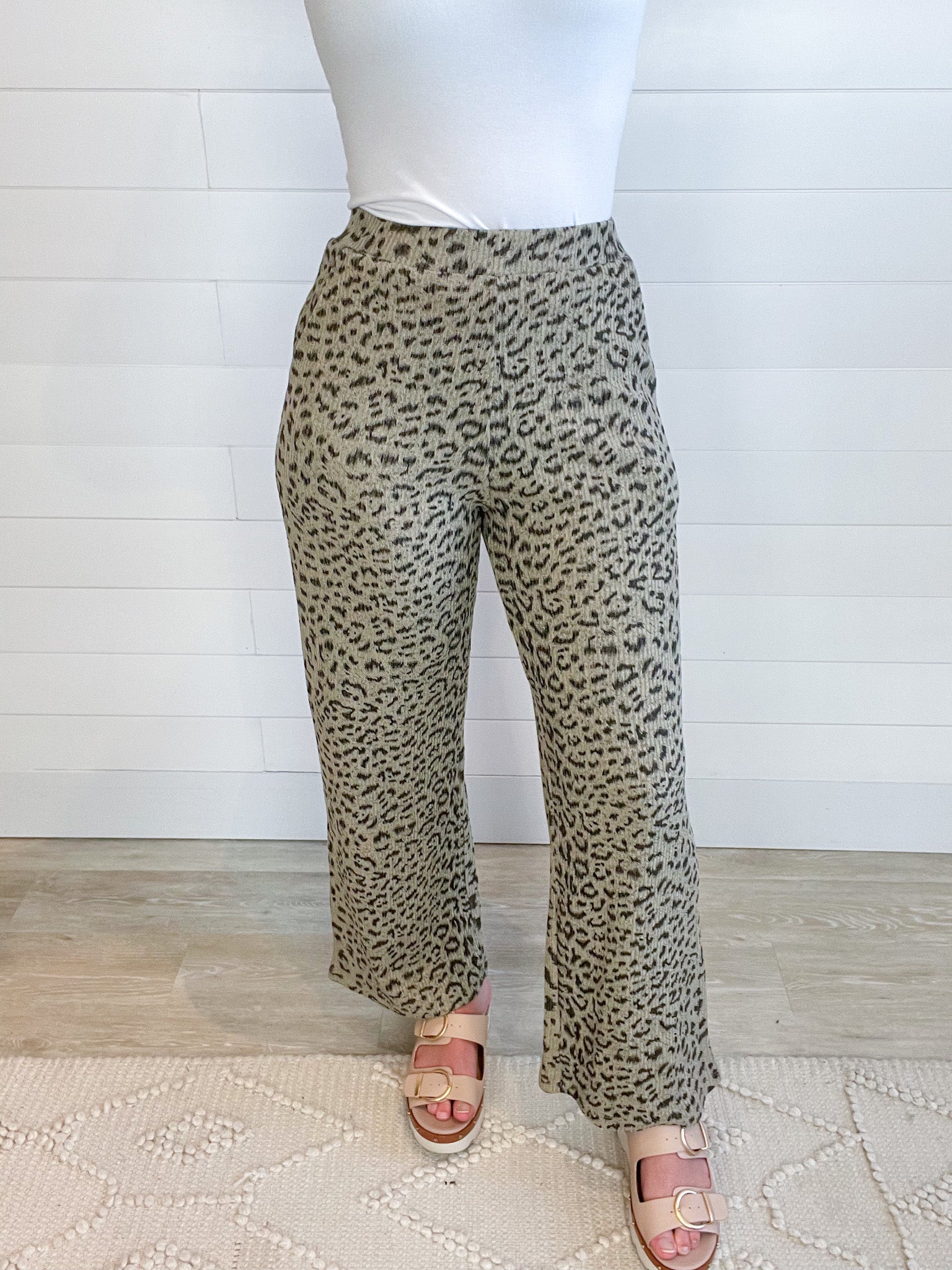 Ribbed Leopard Print Knit Pants