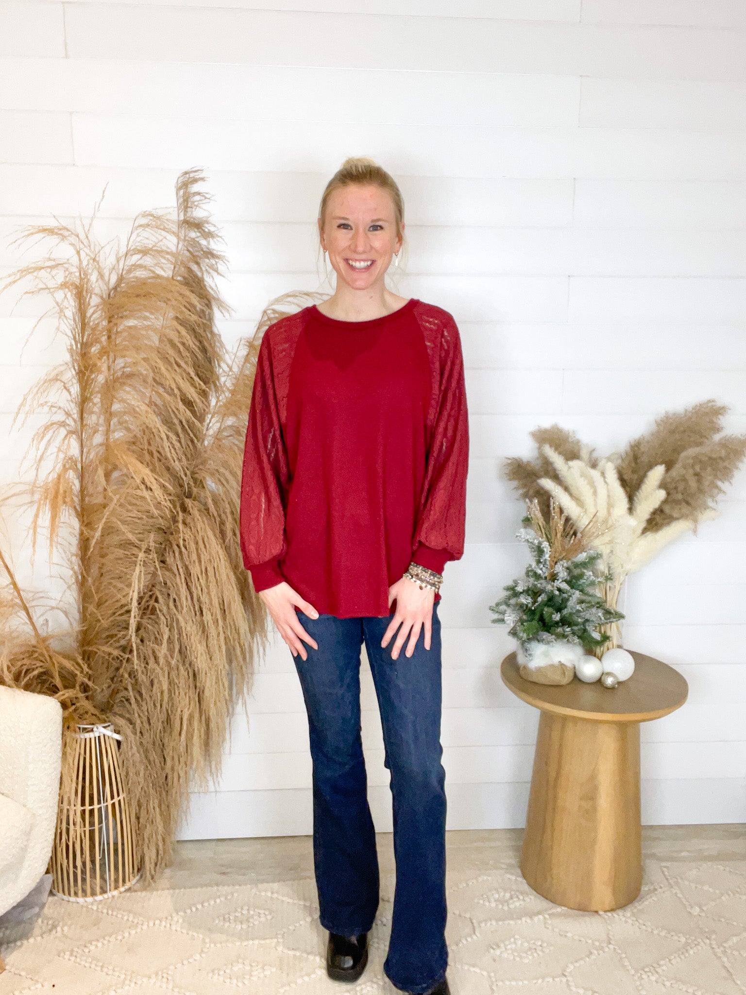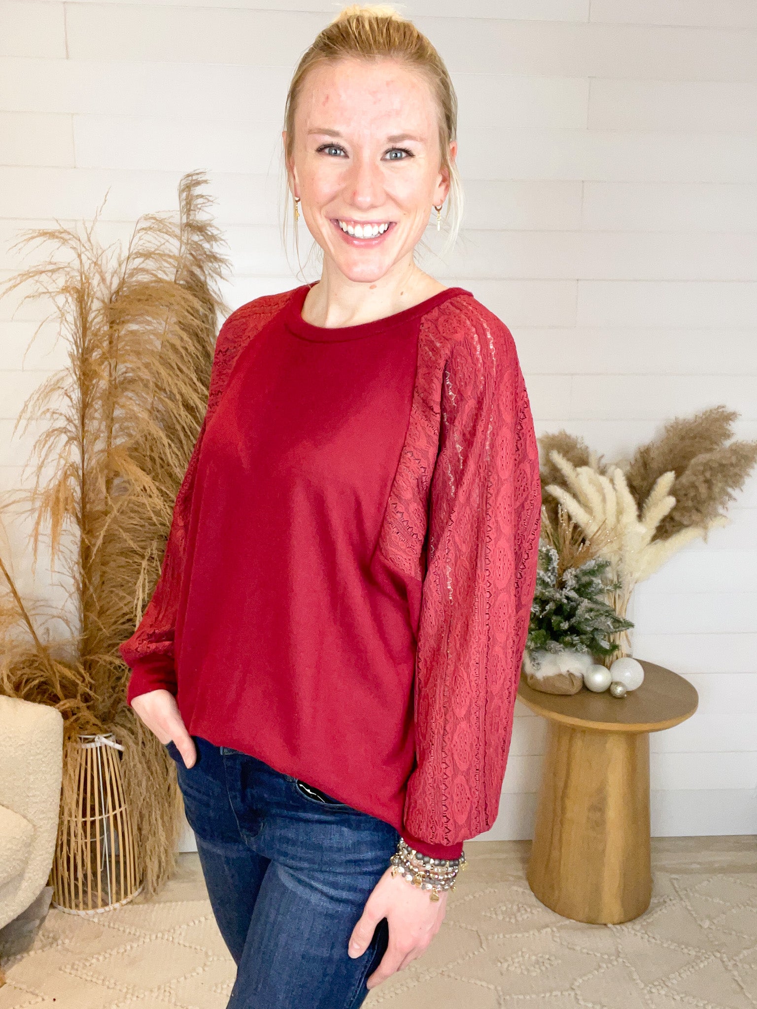 *Final Sale* Solid Lace Contrast Long Sleeve Top