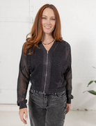 Meet your new in-between favorite — the Mesh Star Zip Up Sweater! With its open weave knit and twinkly lurex threads, it’s the perfect mix of cozy and cool. Textured star details add a playful pop, while the flattering V-neckline and zip-front design make it as easy to style as it is to love. It’s that just-right layer for days when you need something a little lighter than a jacket but more polished than a cardi.