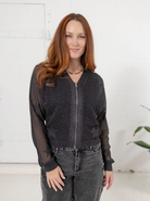 Zip it up over a cami and pair with jeans for day, or layer it open over a sleek tank for a little nighttime sparkle.