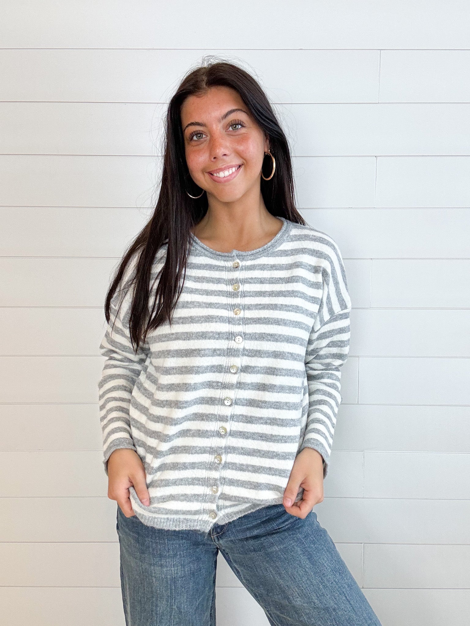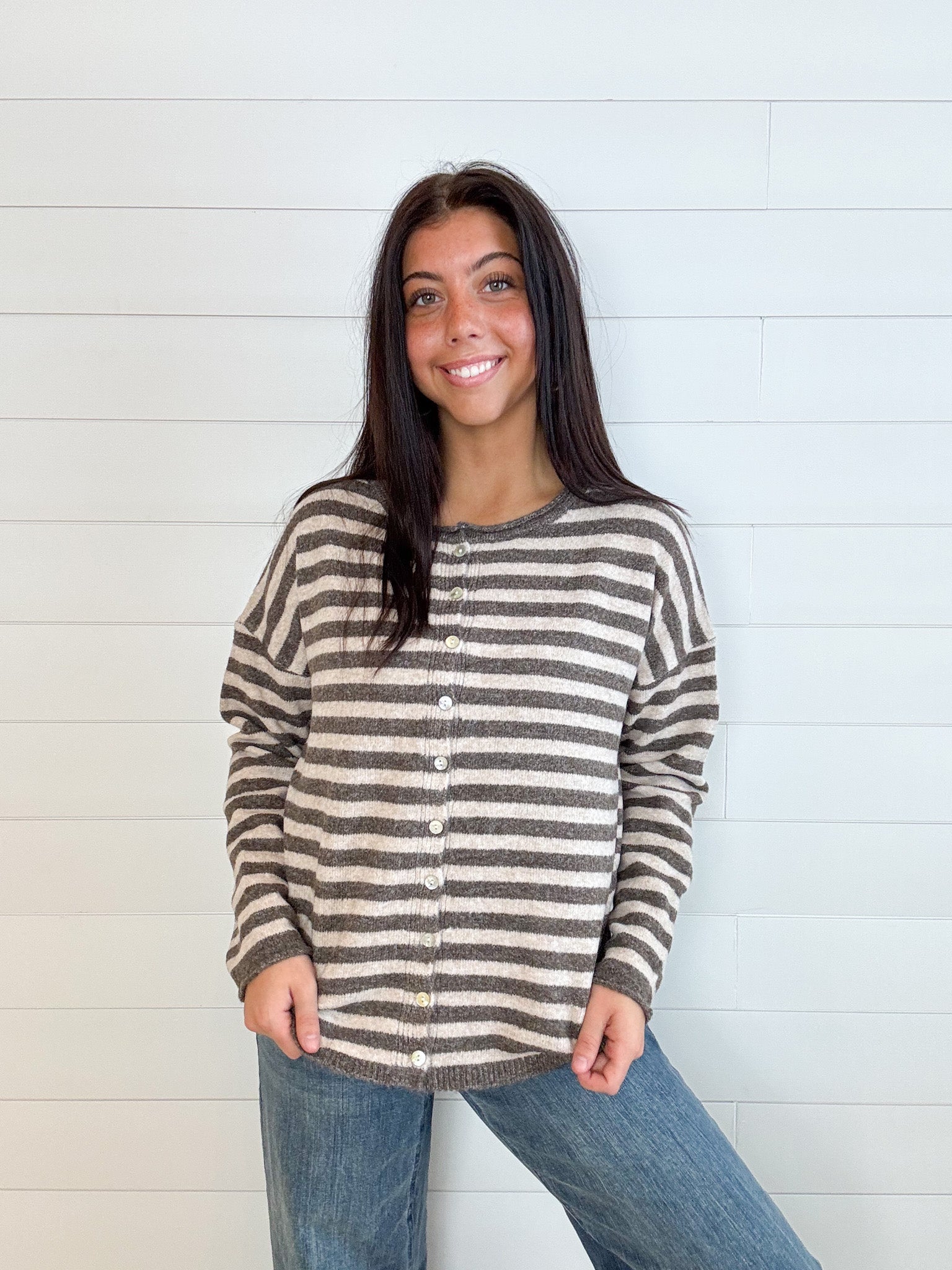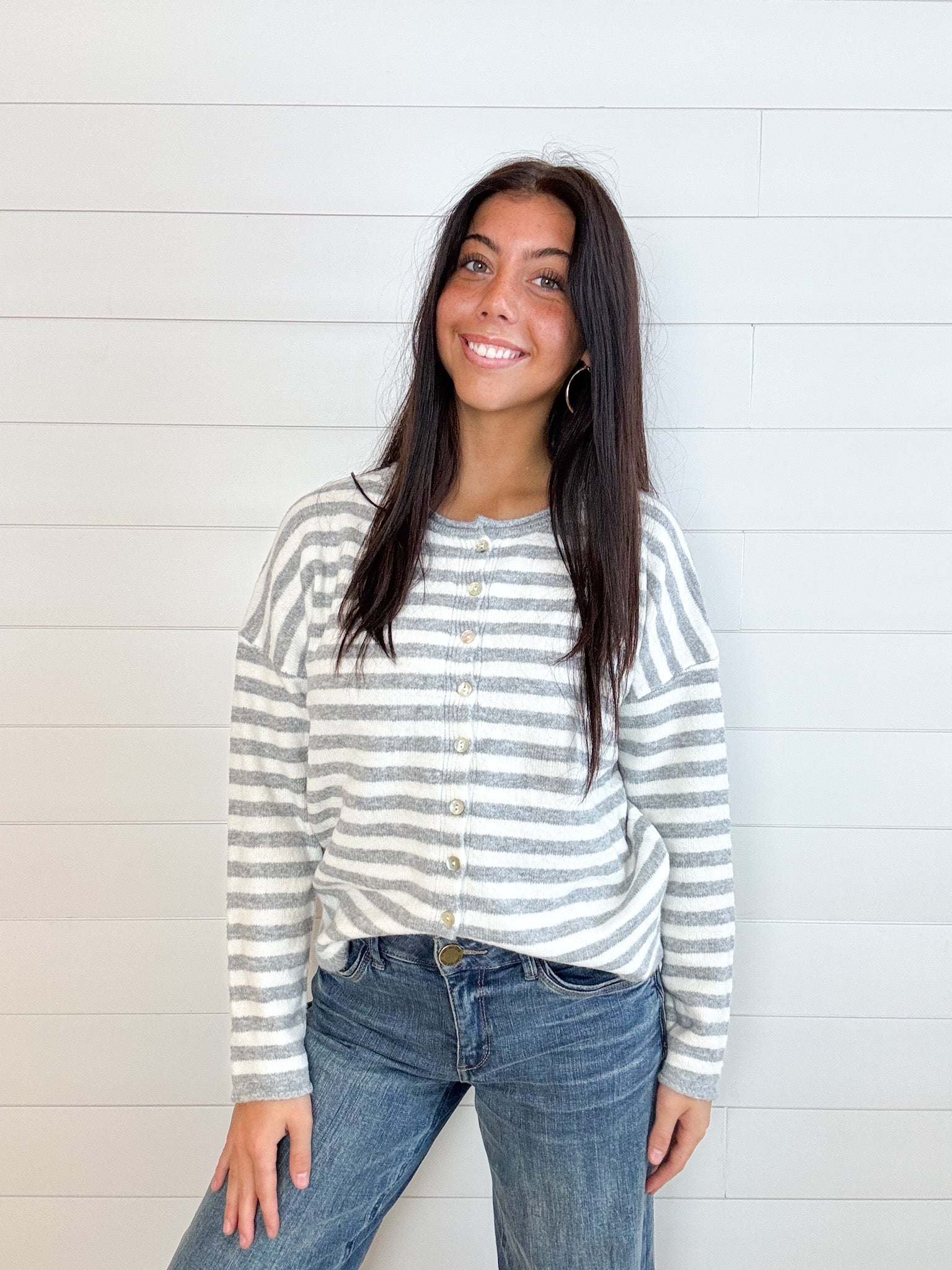 The Rolled Hem Drop Shoulder Cardigan is that just-right layer your closet’s been craving—simple, classic, and totally lovable. With a relaxed drop shoulder fit and soft rolled edges, it’s finished with dreamy mother of pearl buttons that add a subtle touch of shine. Throw it on over just about anything and feel instantly pulled together