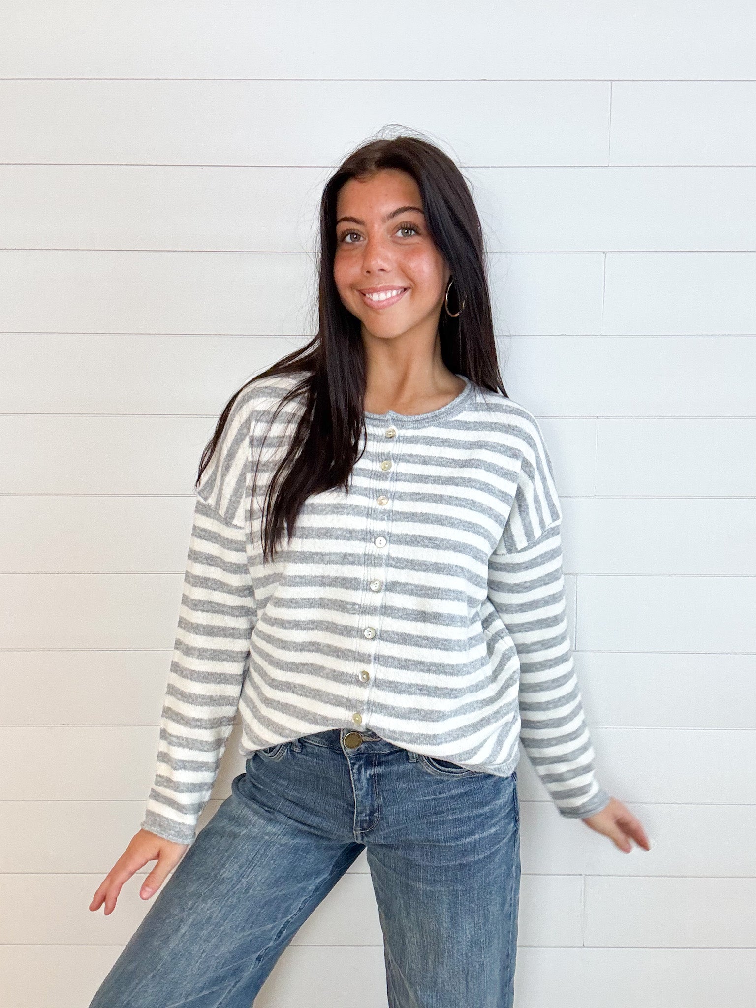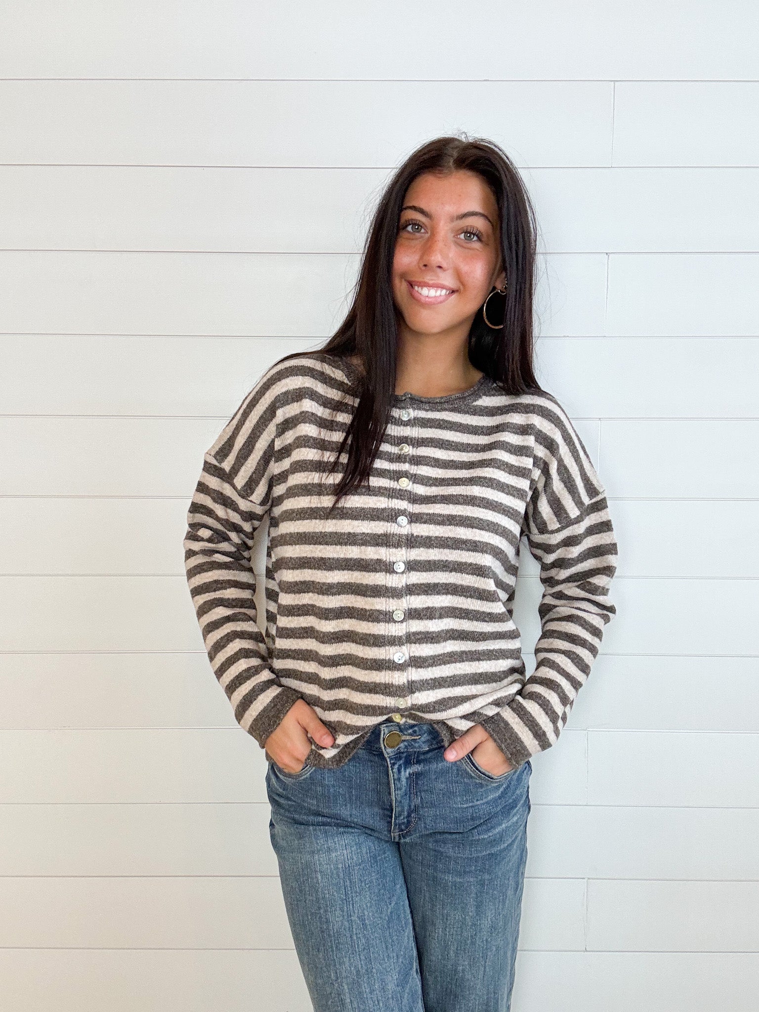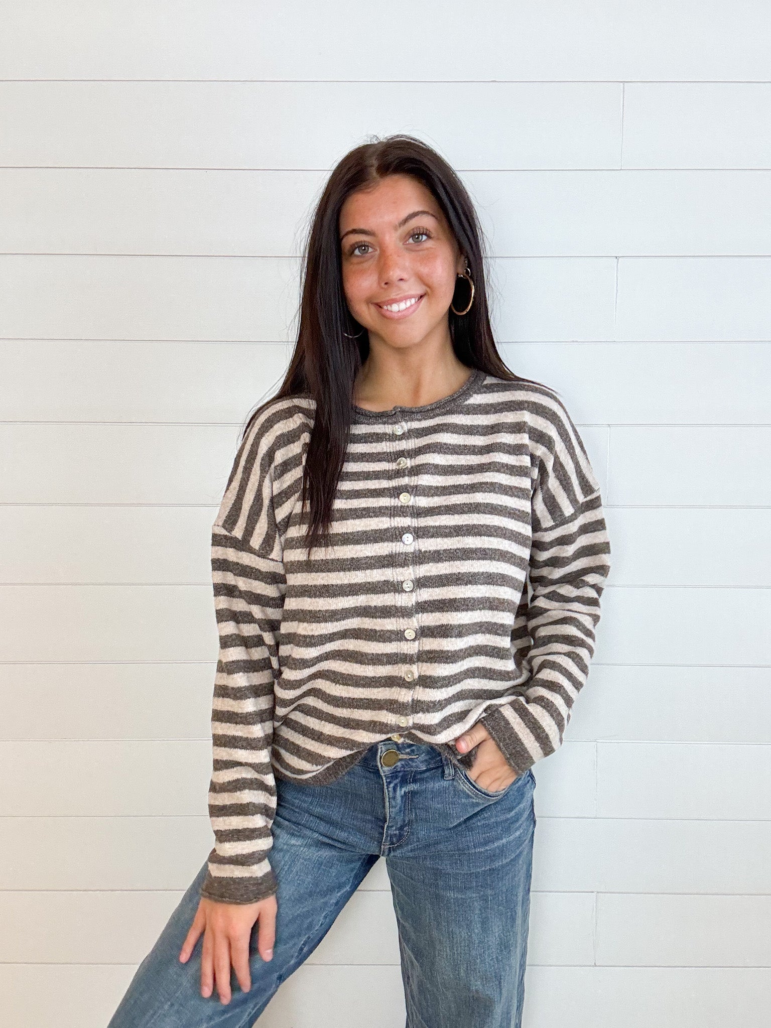 The Rolled Hem Drop Shoulder Cardigan is that just-right layer your closet’s been craving—simple, classic, and totally lovable. With a relaxed drop shoulder fit and soft rolled edges, it’s finished with dreamy mother of pearl buttons that add a subtle touch of shine. Throw it on over just about anything and feel instantly pulled together
