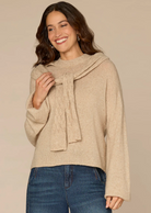 With long sleeves, a round neck, and a straight hem, this pointelle sweater is a must-have style. It leans into the twofer trend with a sweater tie front that creates a layered look.