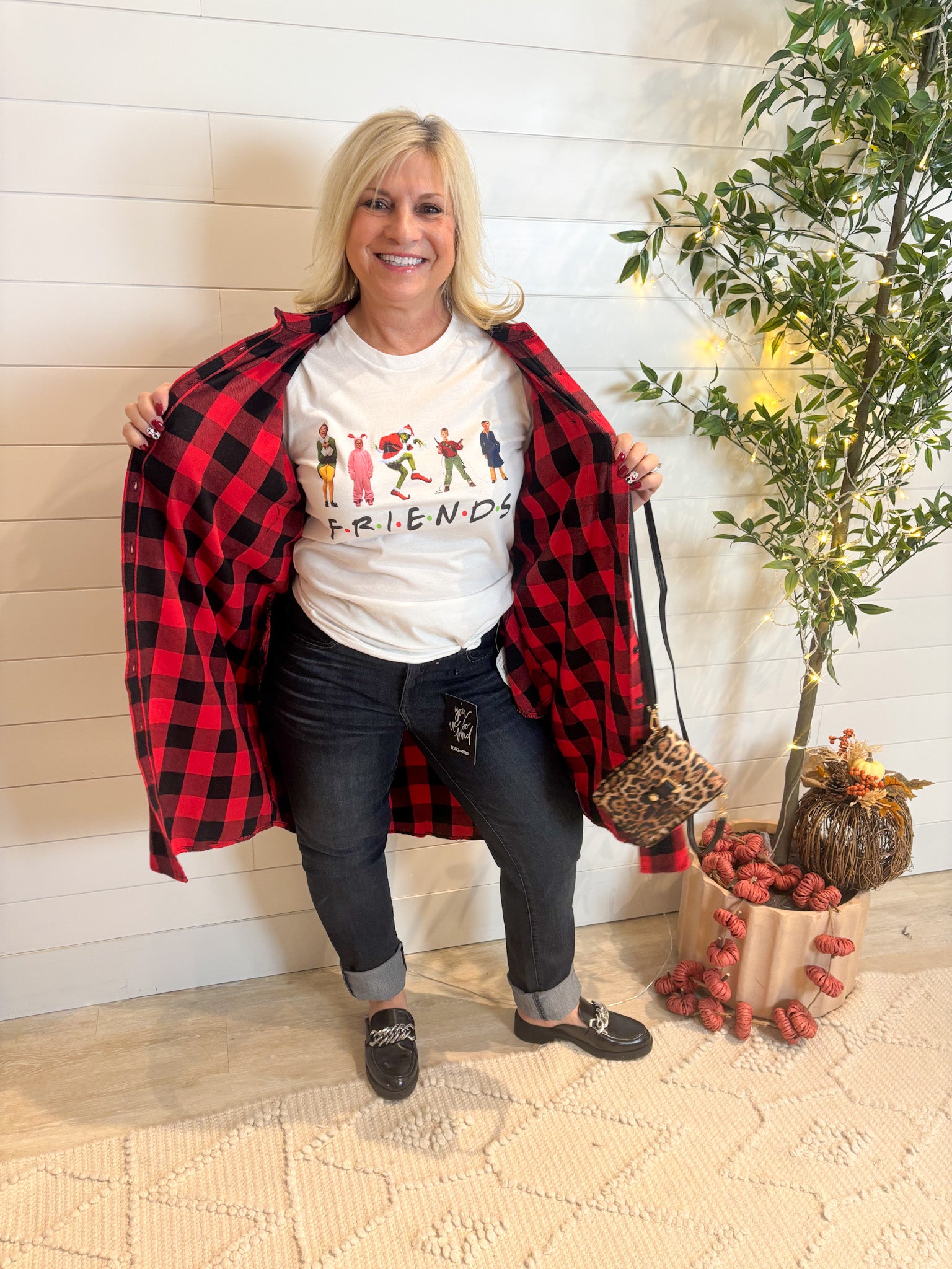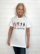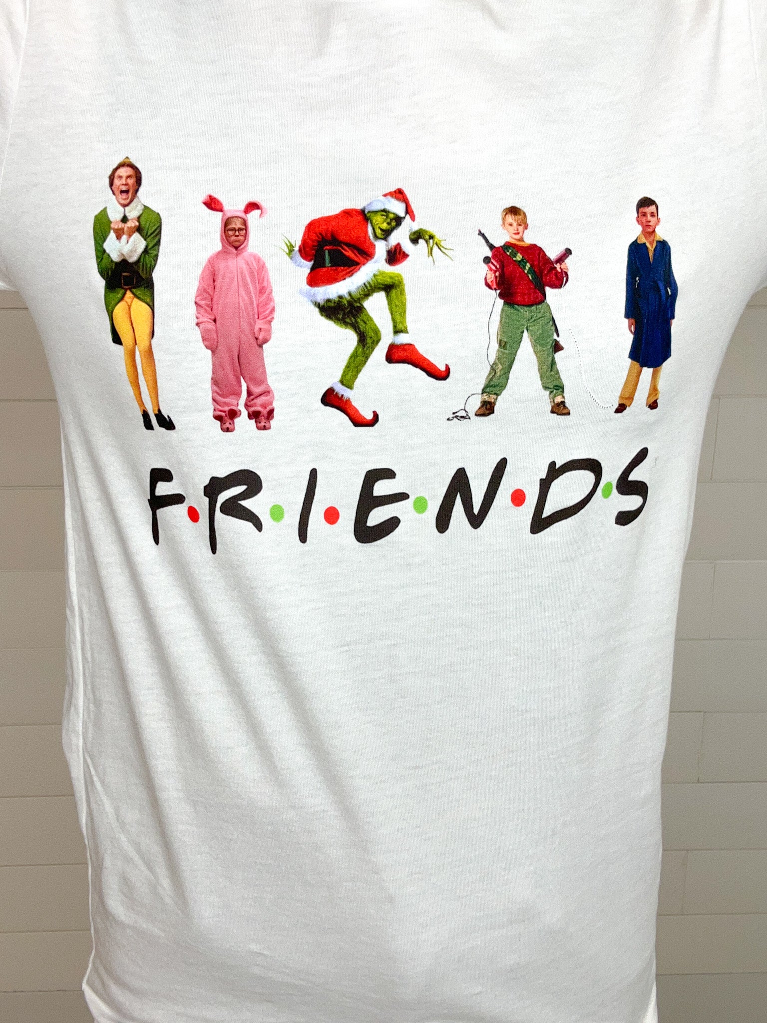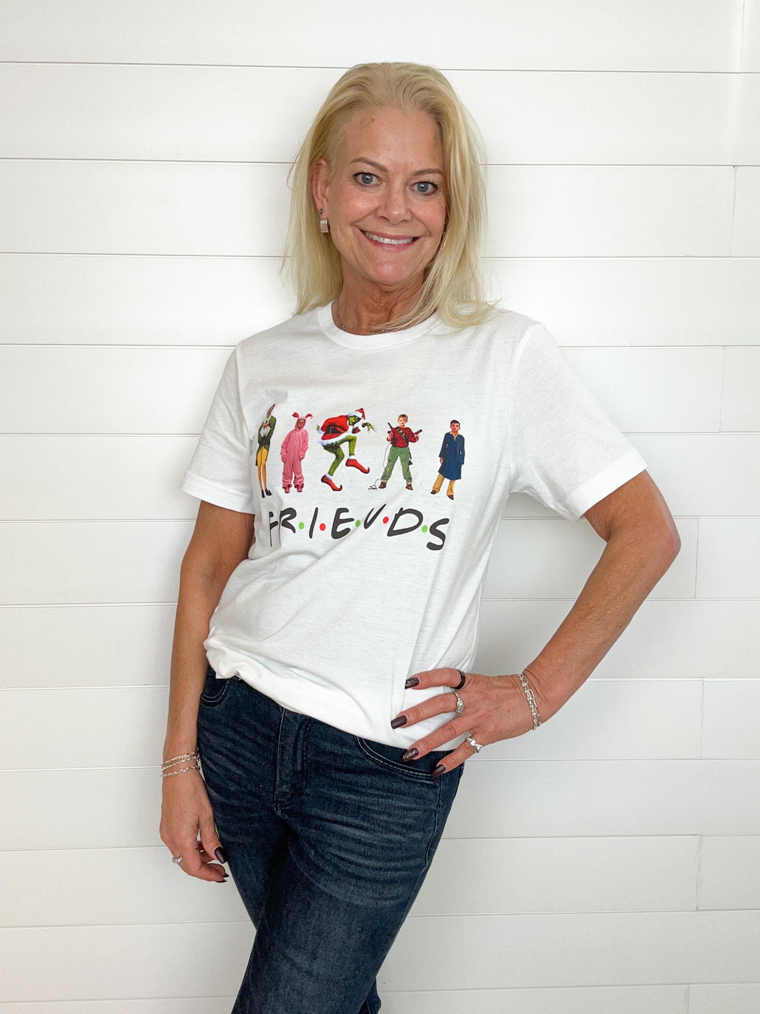 Our Christmas Movie Friends Graphic Tee is made for cozy nights in, hot cocoa in hand, and your favorite holiday classics on repeat! Featuring iconic Christmas movie characters and a nostalgic logo inspired by the TV show Friends, it’s the perfect tee for festive lounging or gifting.
