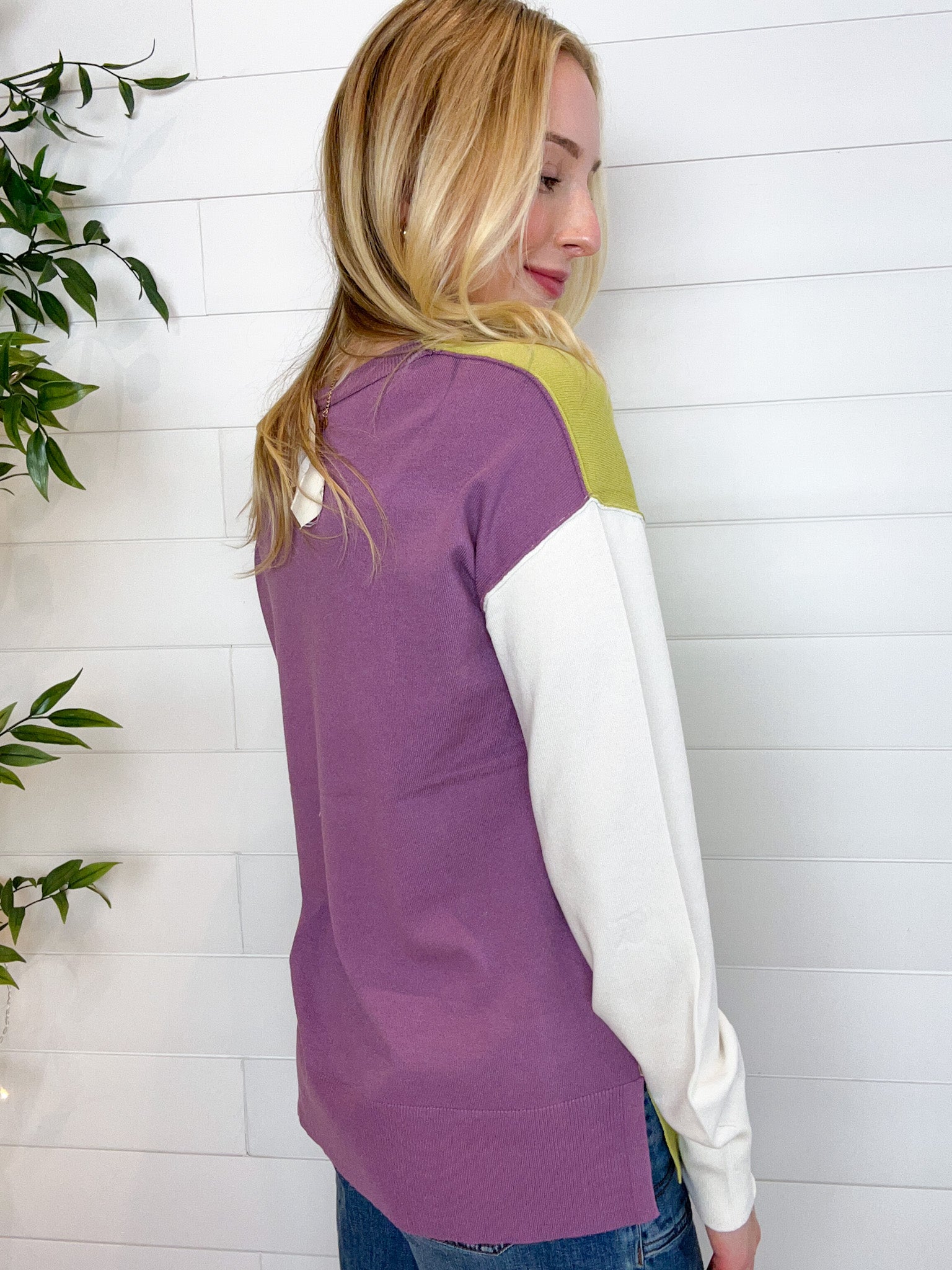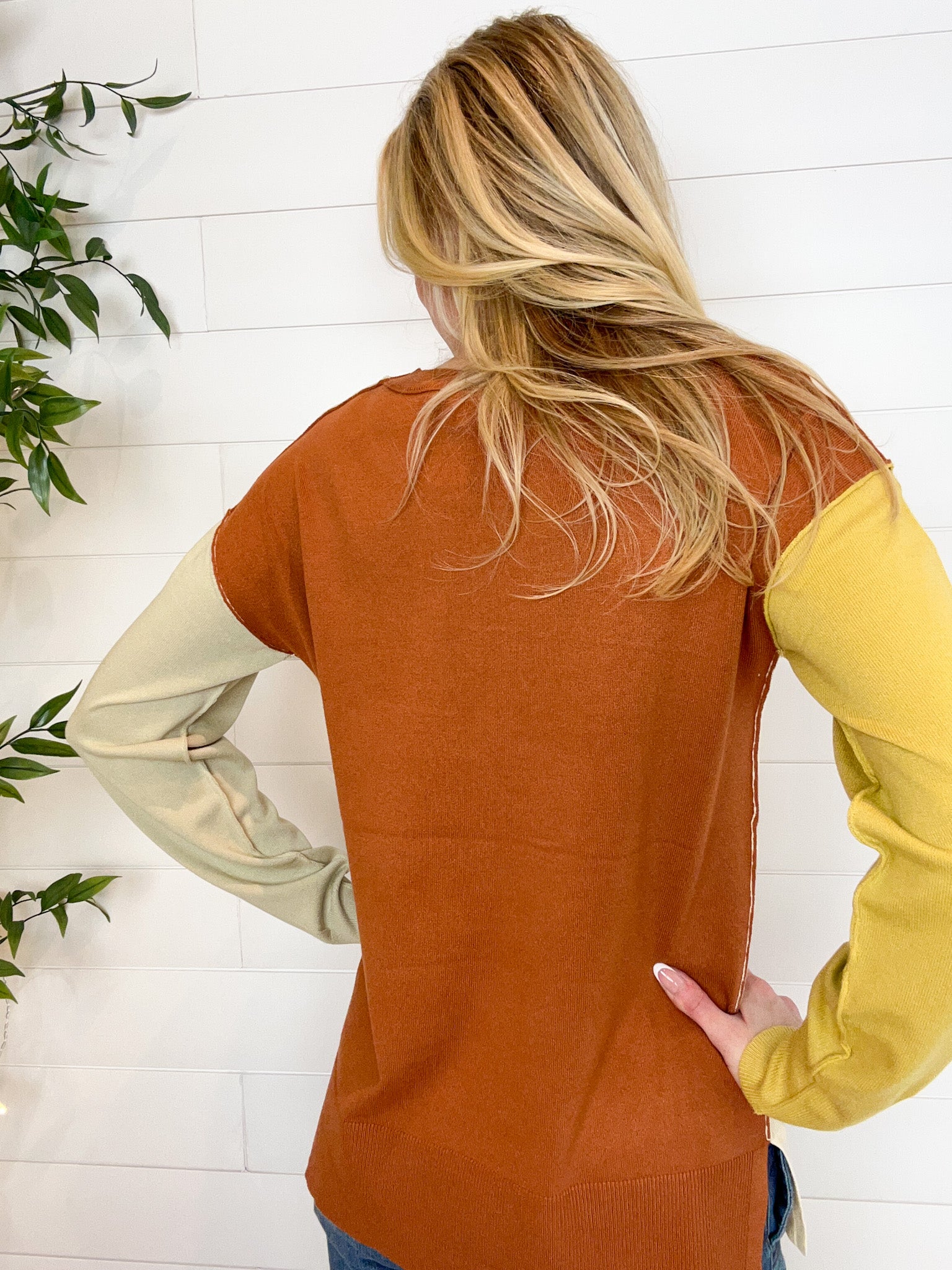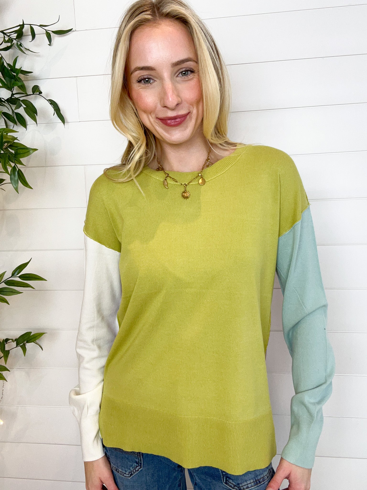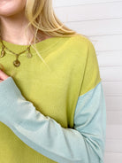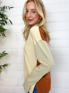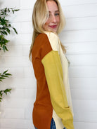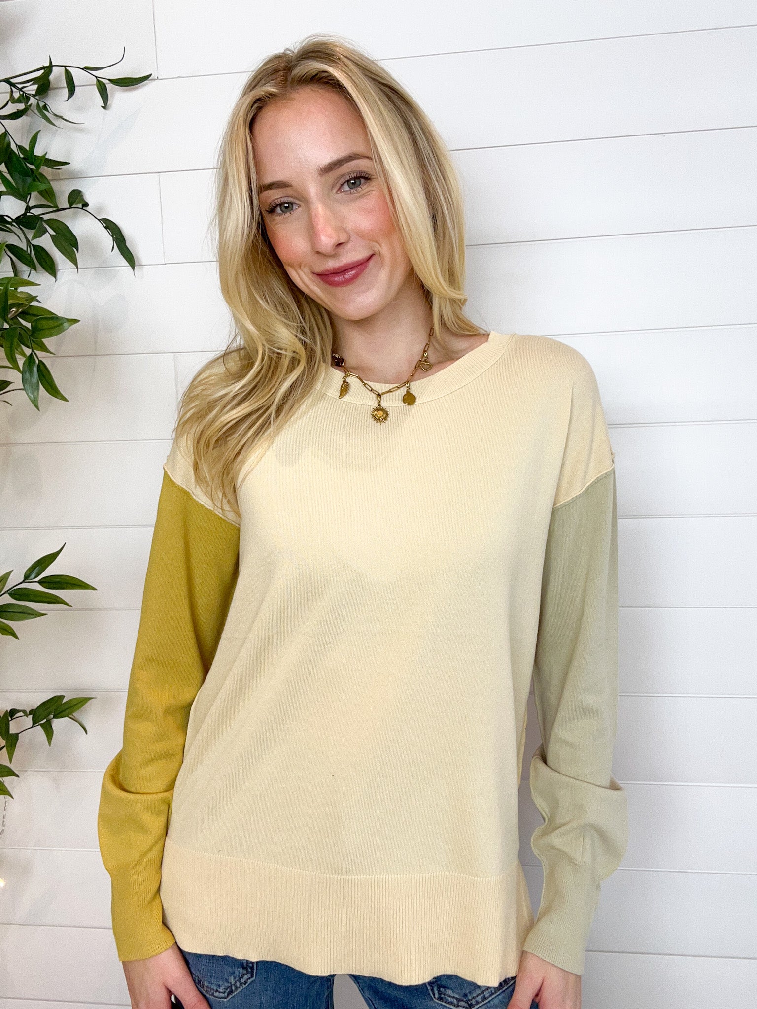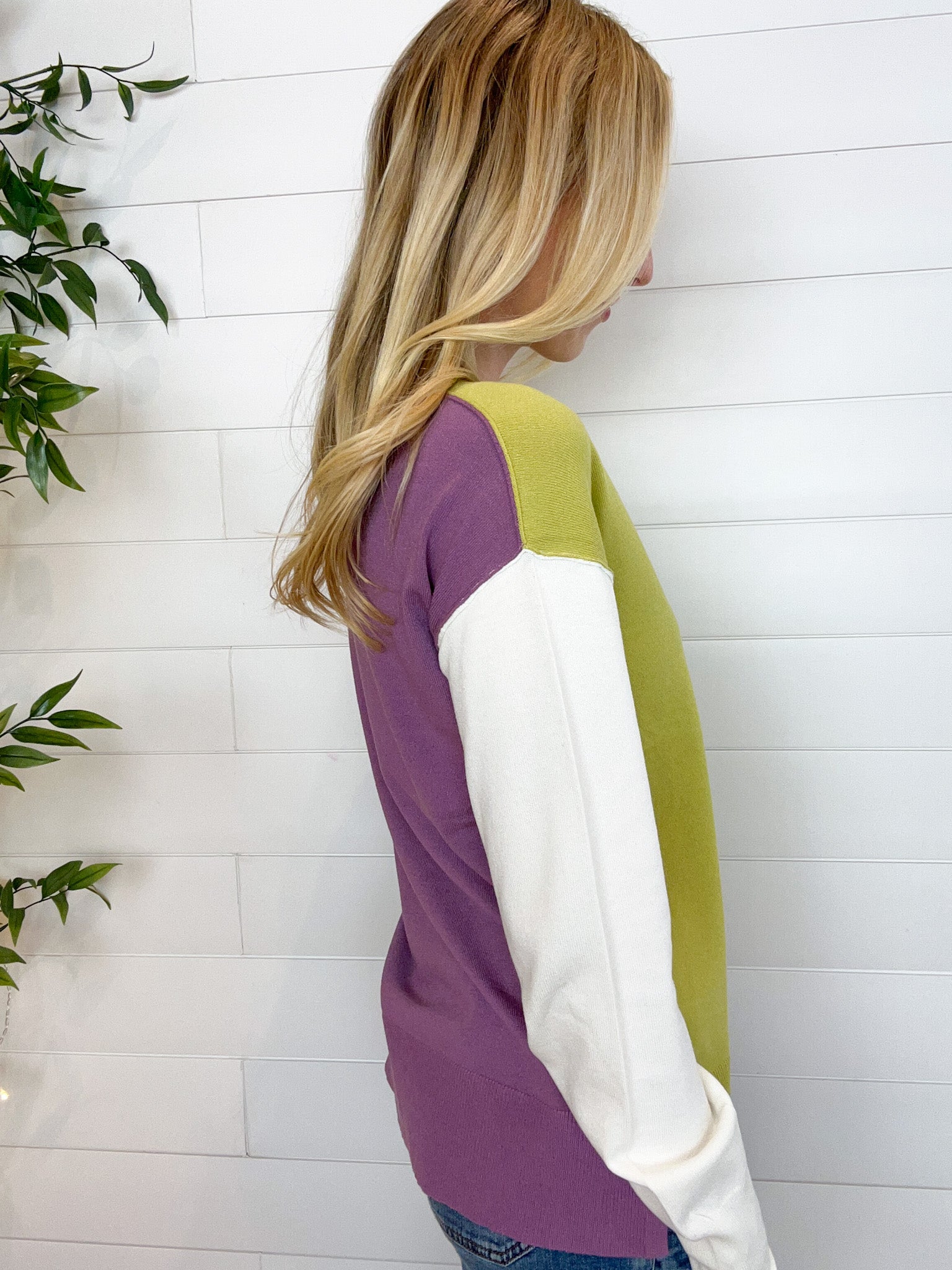 This modern pullover features gentle color blocking and an easy, relaxed silhouette. With its lightweight feel and effortless drape, it’s the perfect throw-on piece for those in-between seasons when you want comfort without giving up style.