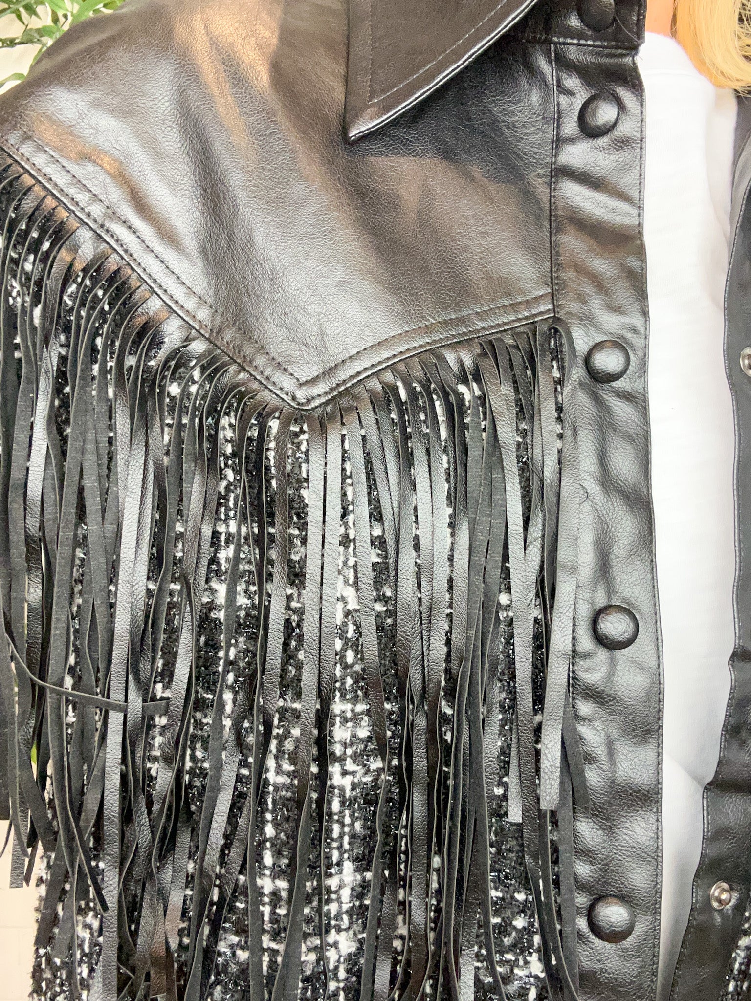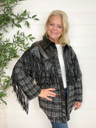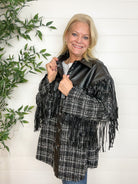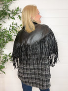 Meet the Faux Fringe Checker Shaket — a bold, fashion-forward layer that blends classic check patterning with sleek faux-leather accents. The dramatic fringe along the sleeves and back adds movement and personality, making this a standout piece you can throw on with just about anything. It’s the perfect mix of edgy, chic, and effortlessly cool.