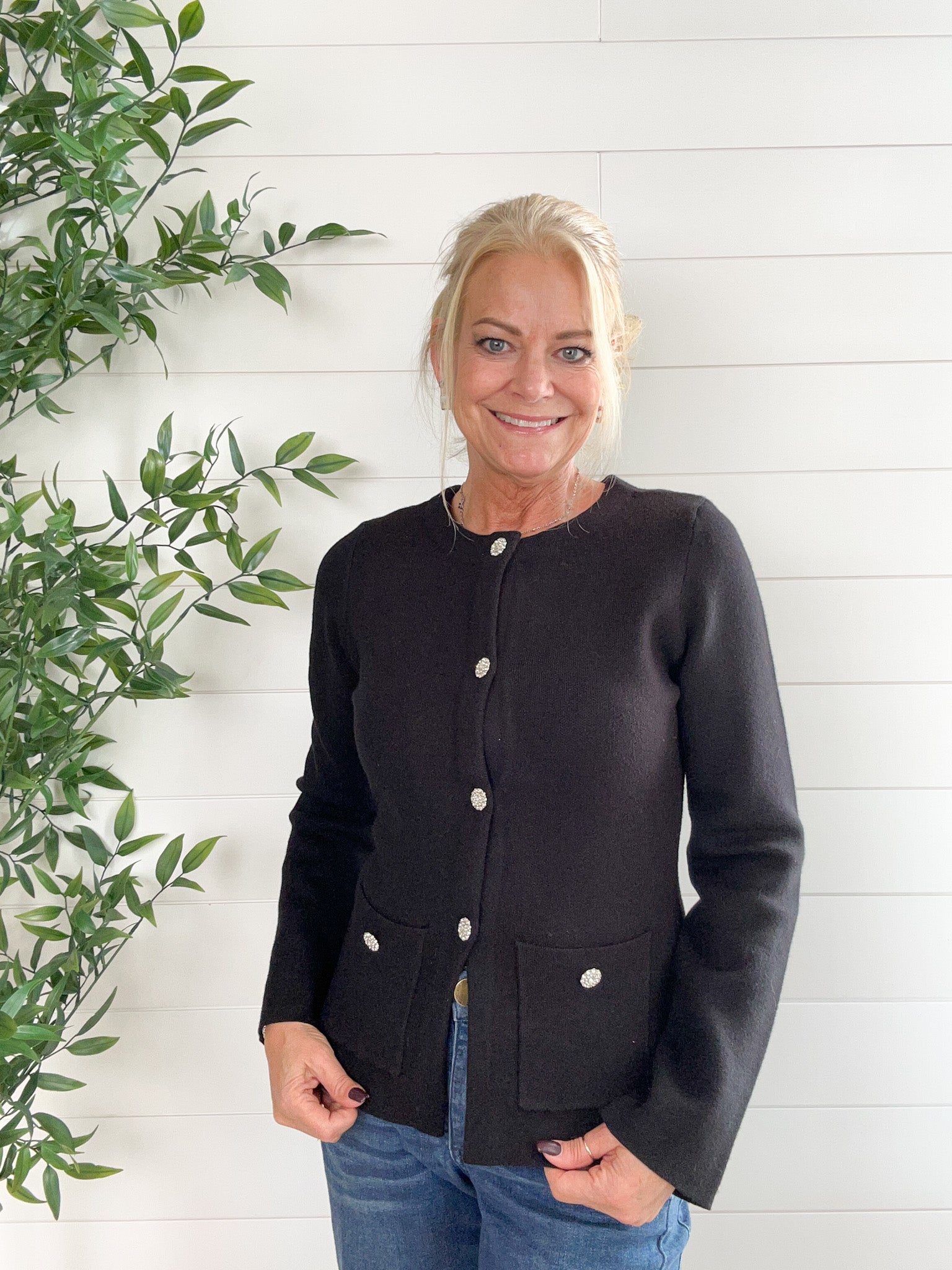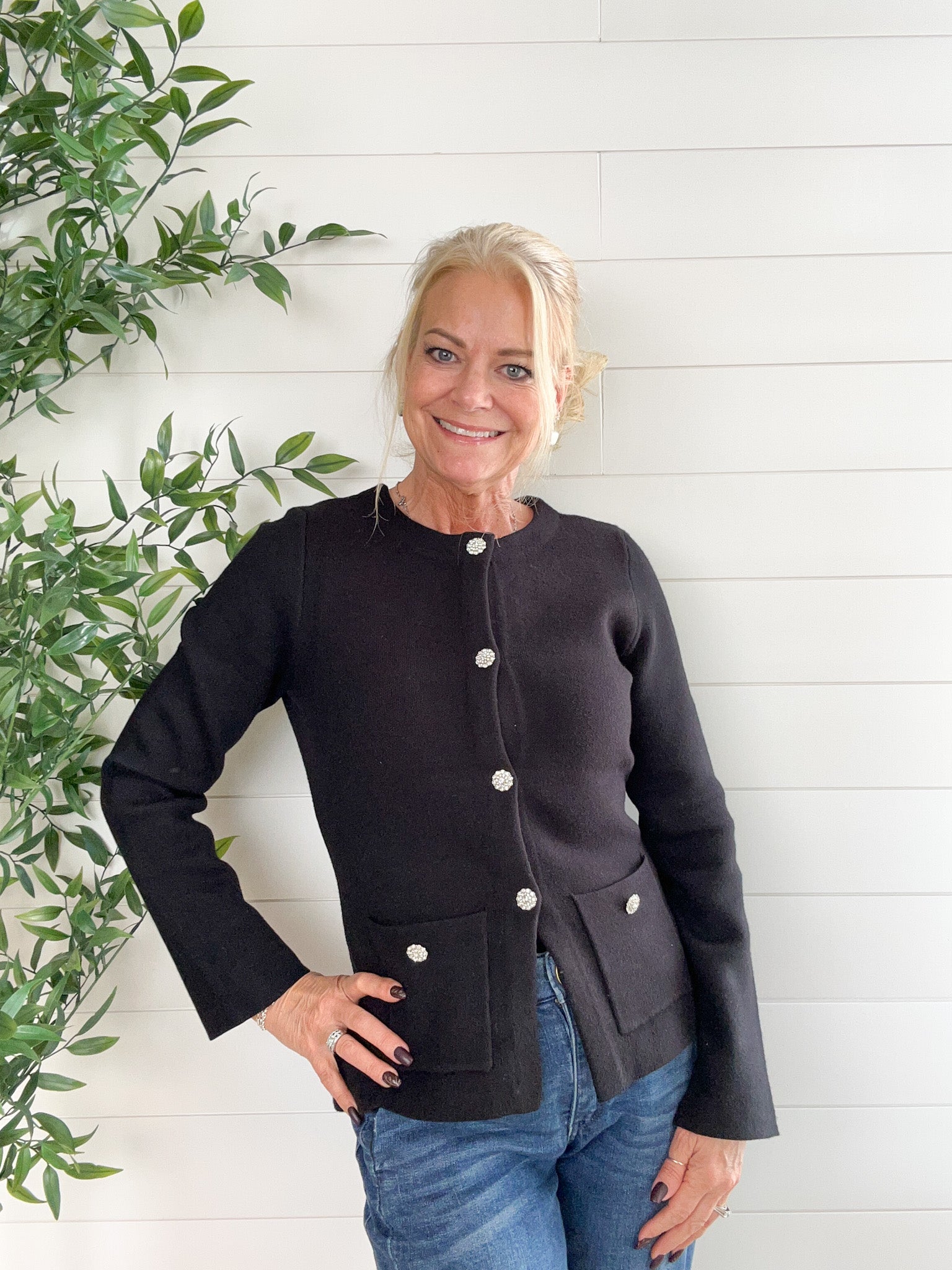 Jewel Button Classic Cardigan